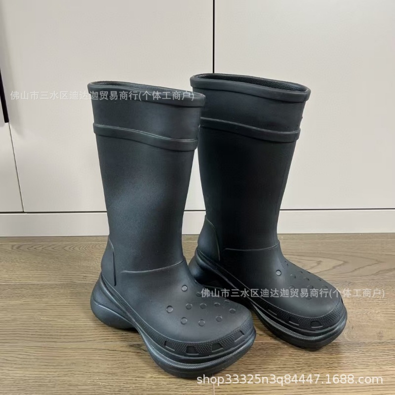 アシーゴー レディース ニーハイブーツ イギリス風 厚底 ラウンドトゥ ドリル柄 レインブーツ カジュアル 多用途 身長アップ 細見え