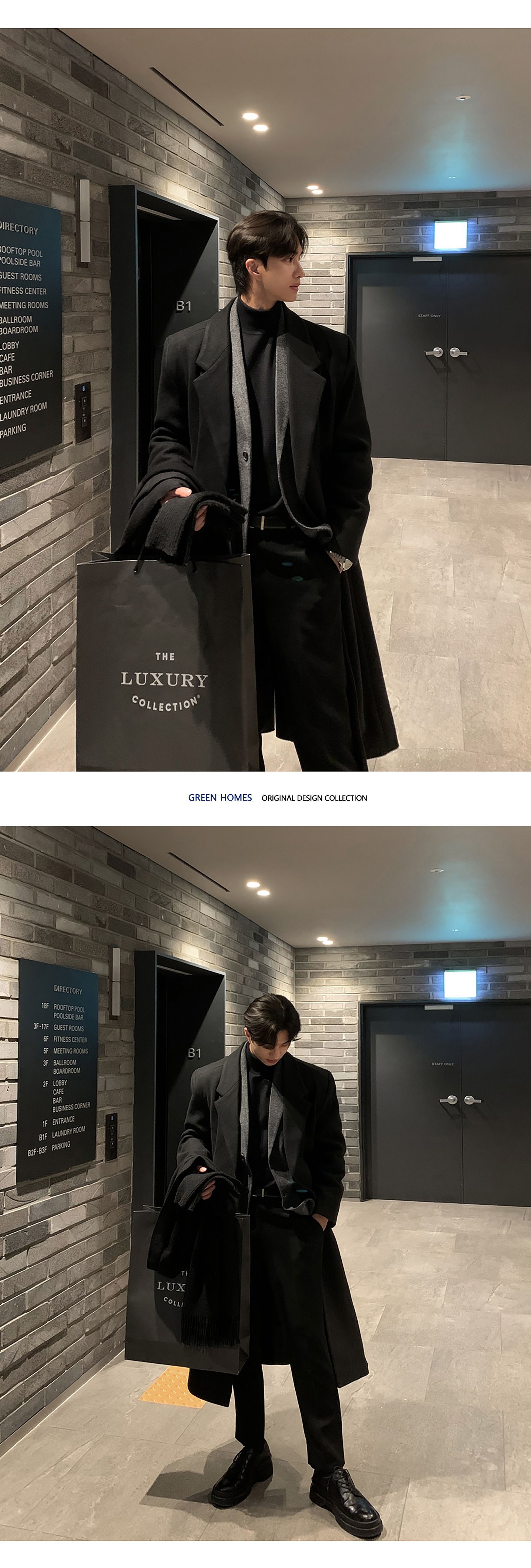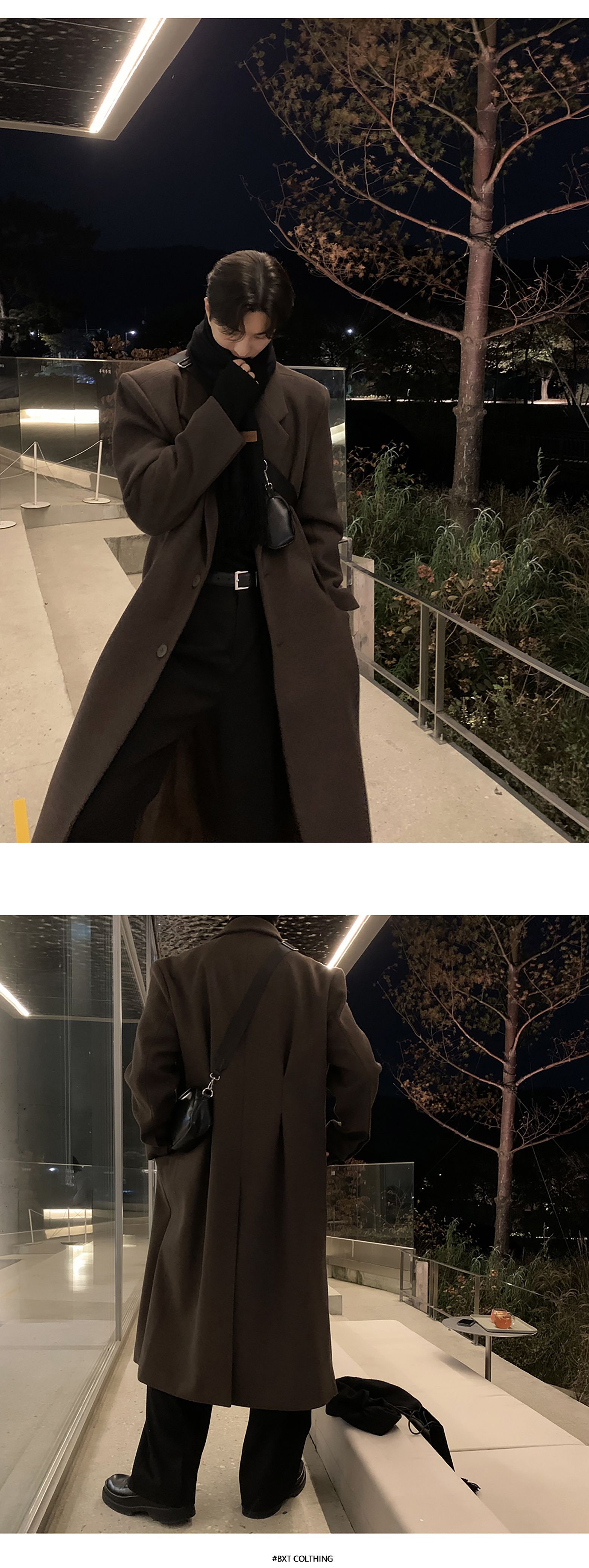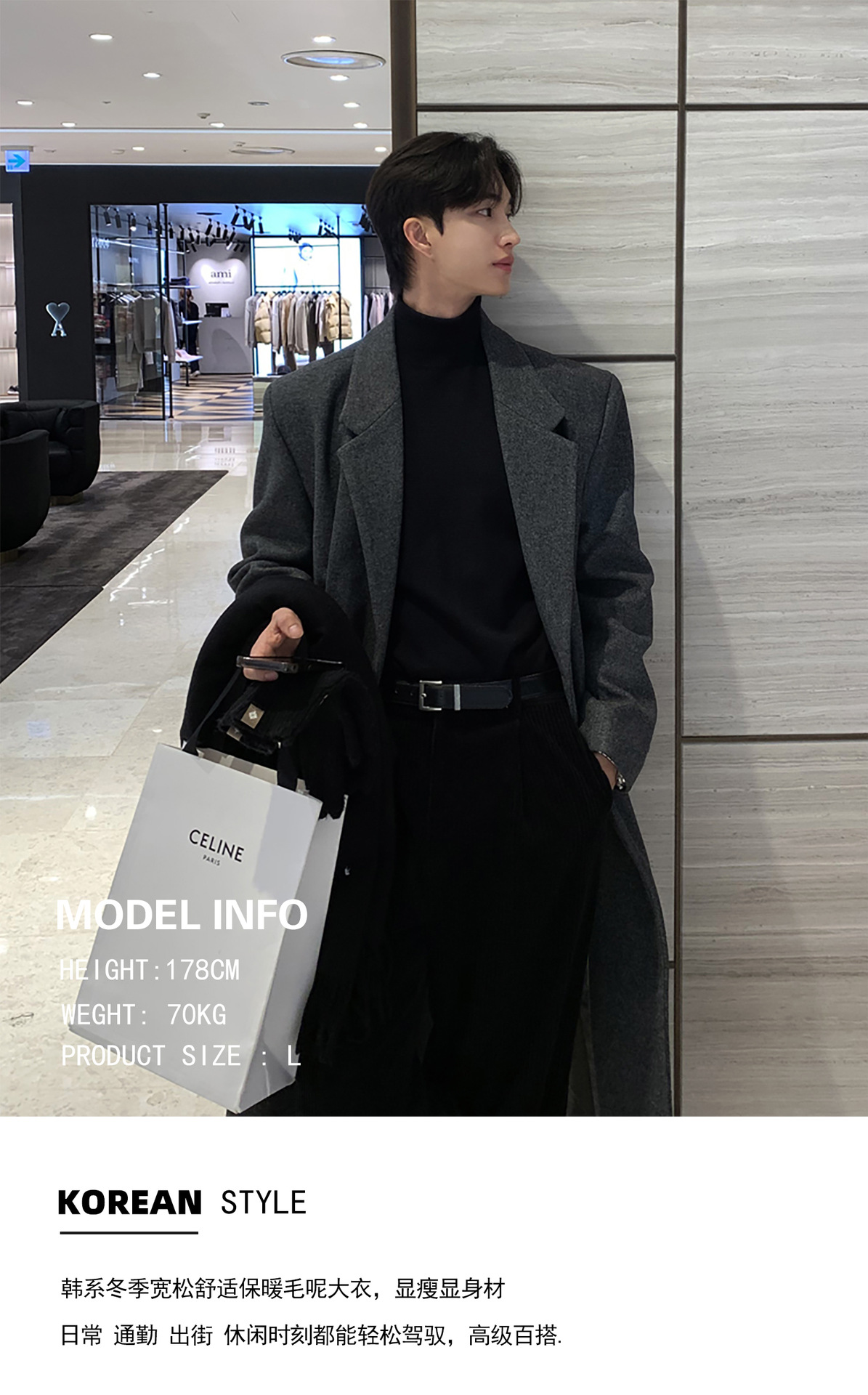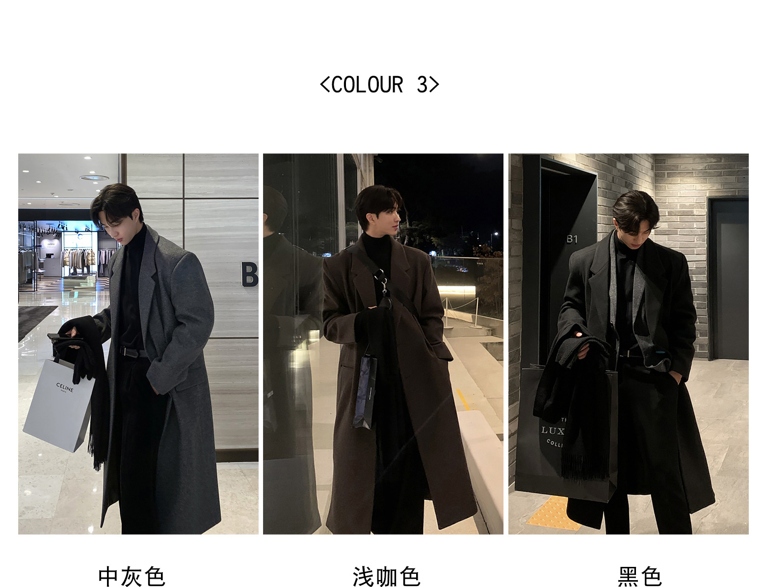 ASCLO秋冬毛呢大衣男加厚中长款过膝高级感呢子大衣外套潮流时尚
