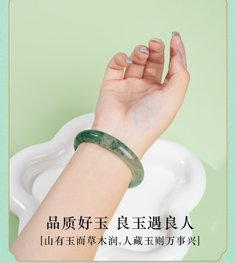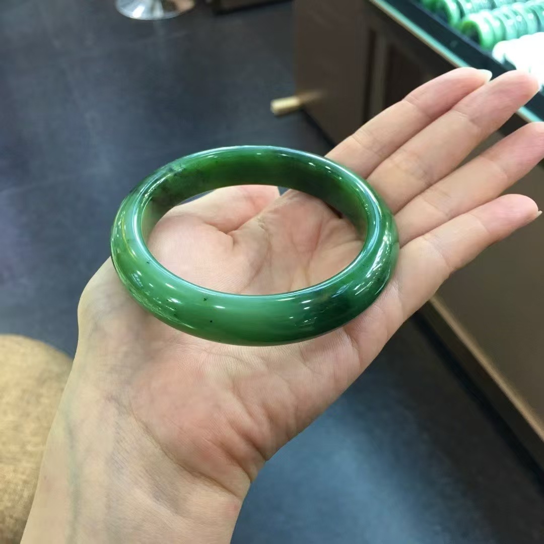 ロシア産碧玉老坑素材ワイドバージョンホータン翡翠ブレスレットほうれん草グリーンサンライトグリーン天然本物翡翠ブレスレット本物