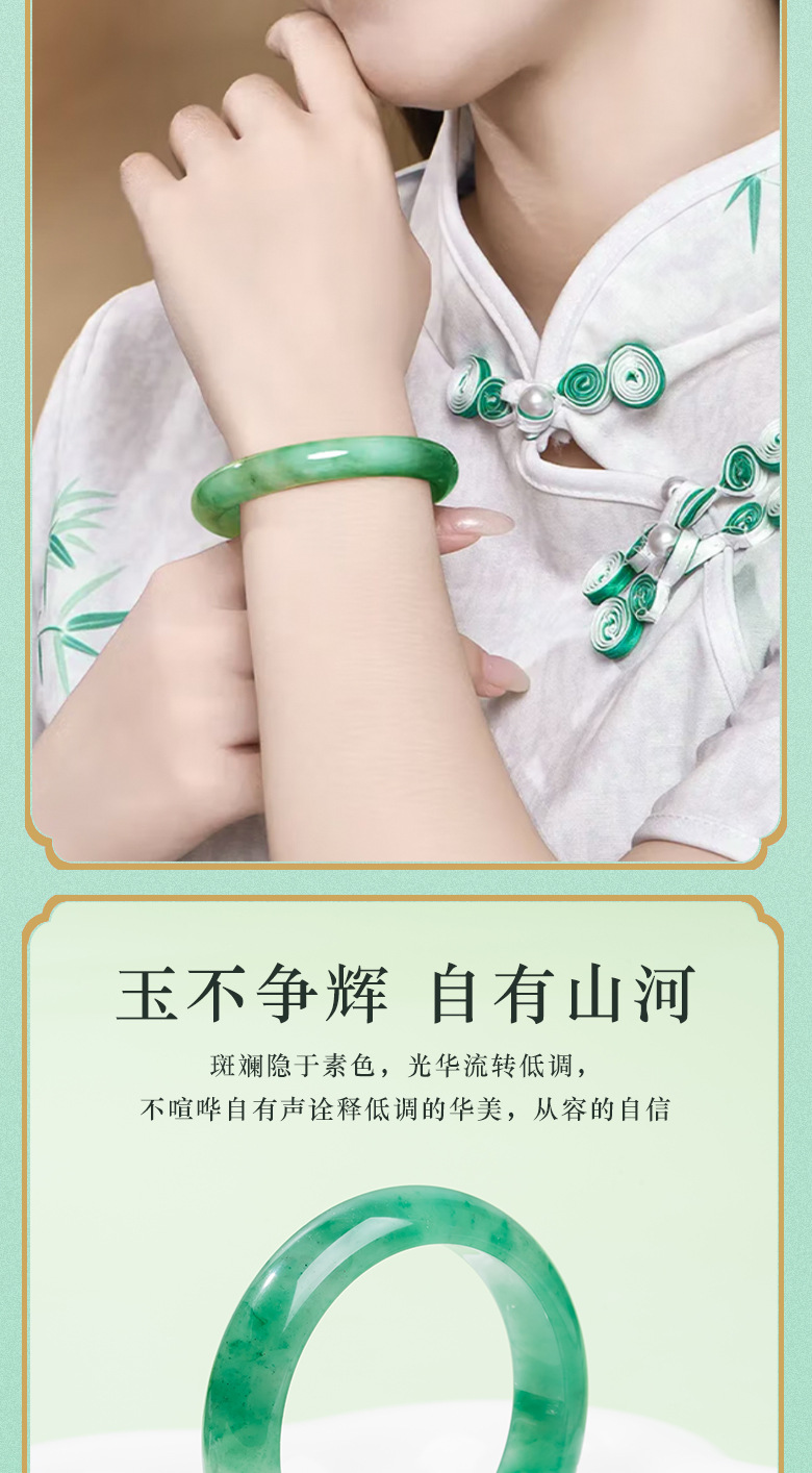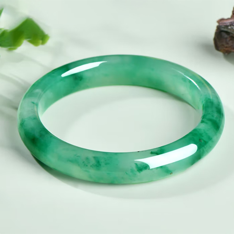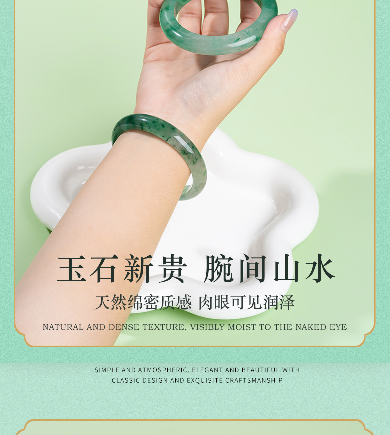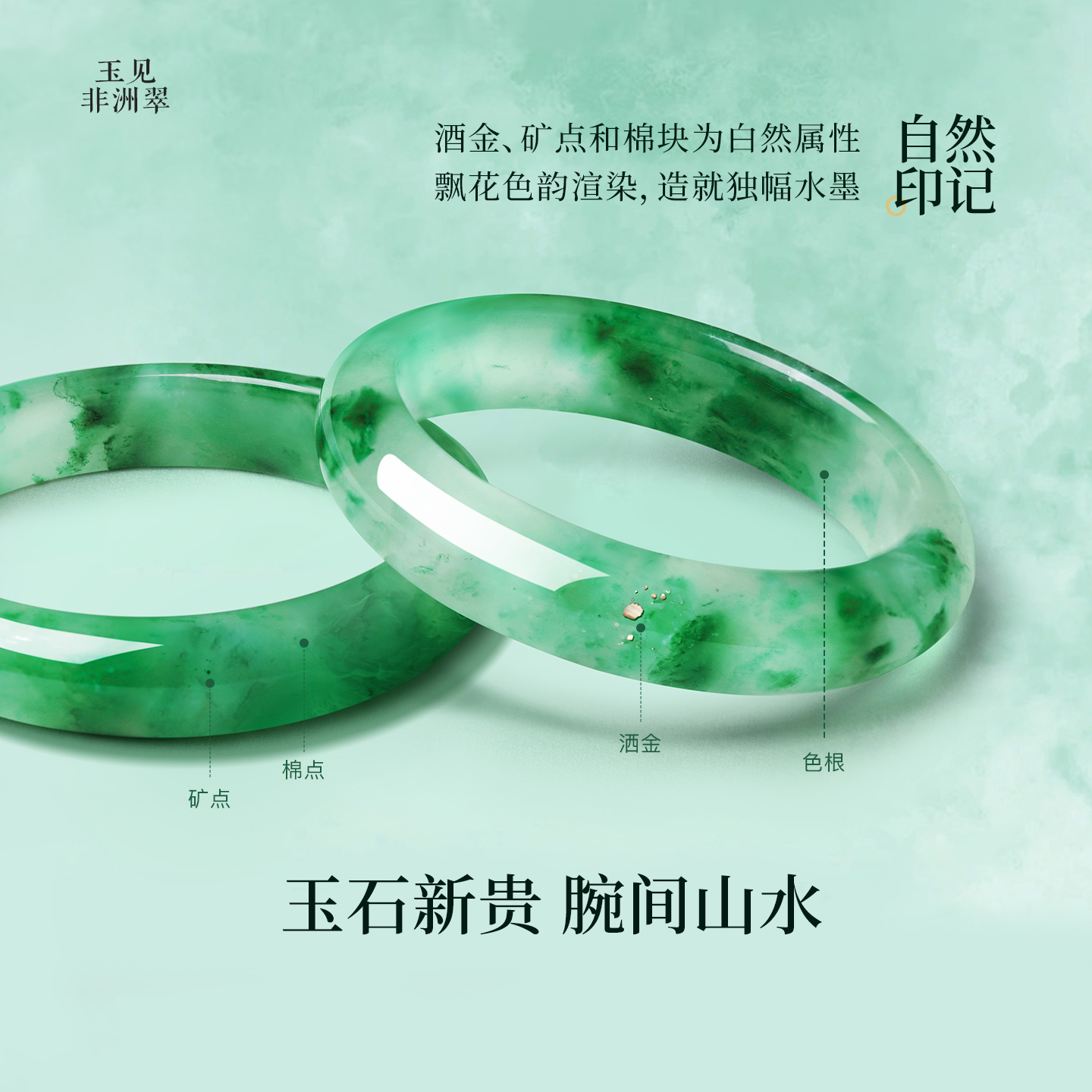 天然缅甸翡翠A货手镯 高货晴绿飘花洒金意境玉镯母亲节礼物带证书