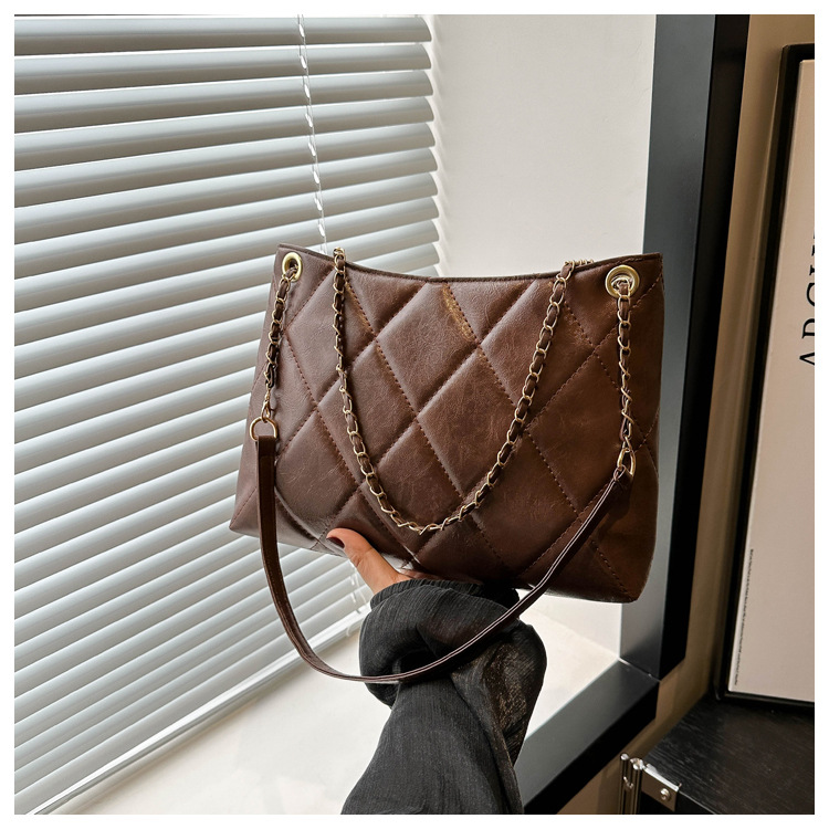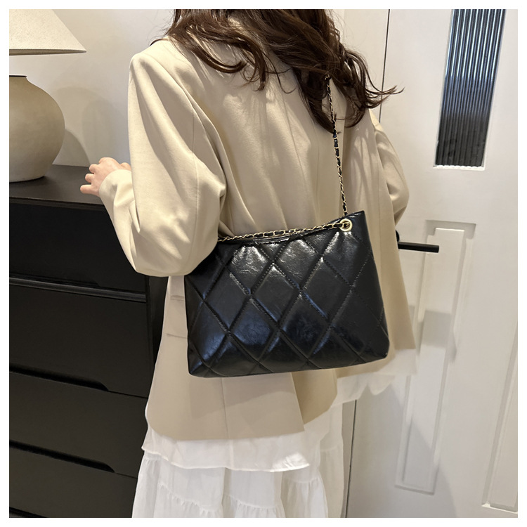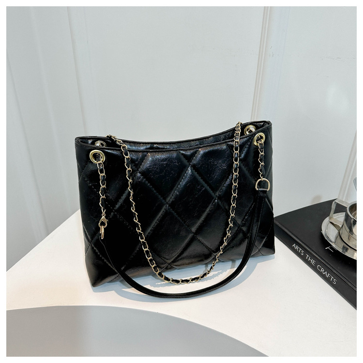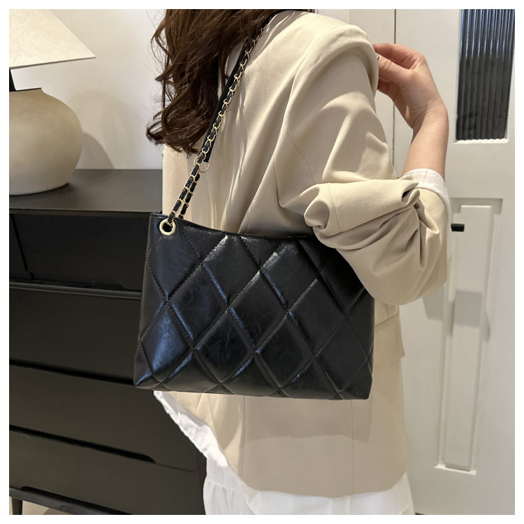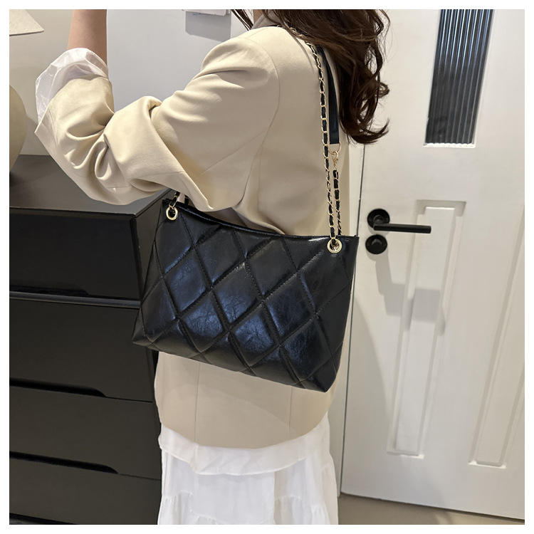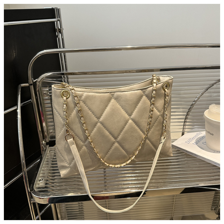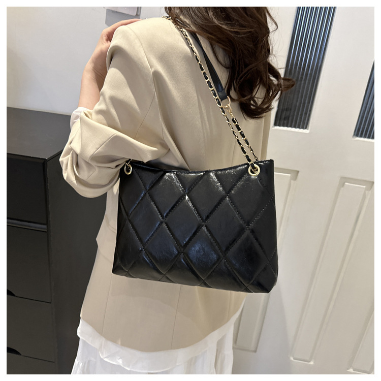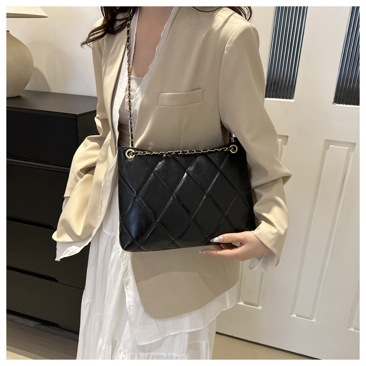 女包2025新款简约时尚大容量菱格单肩包小香风女士链条斜挎托特包