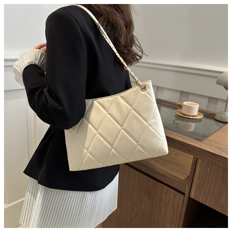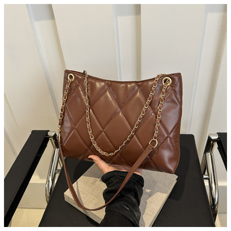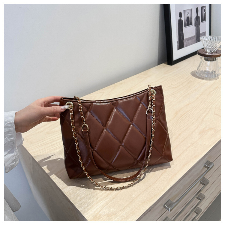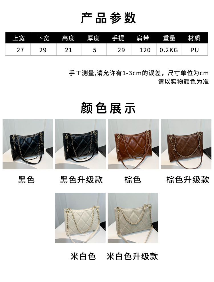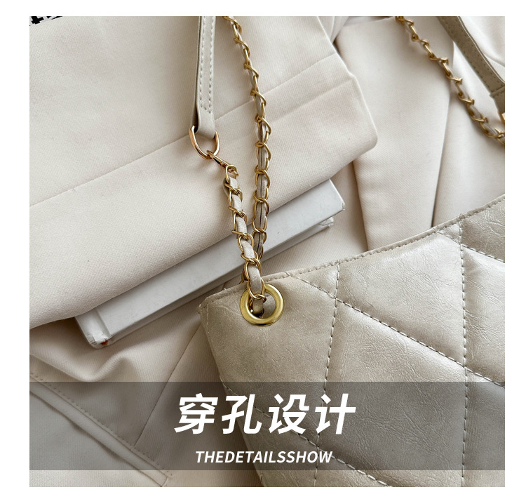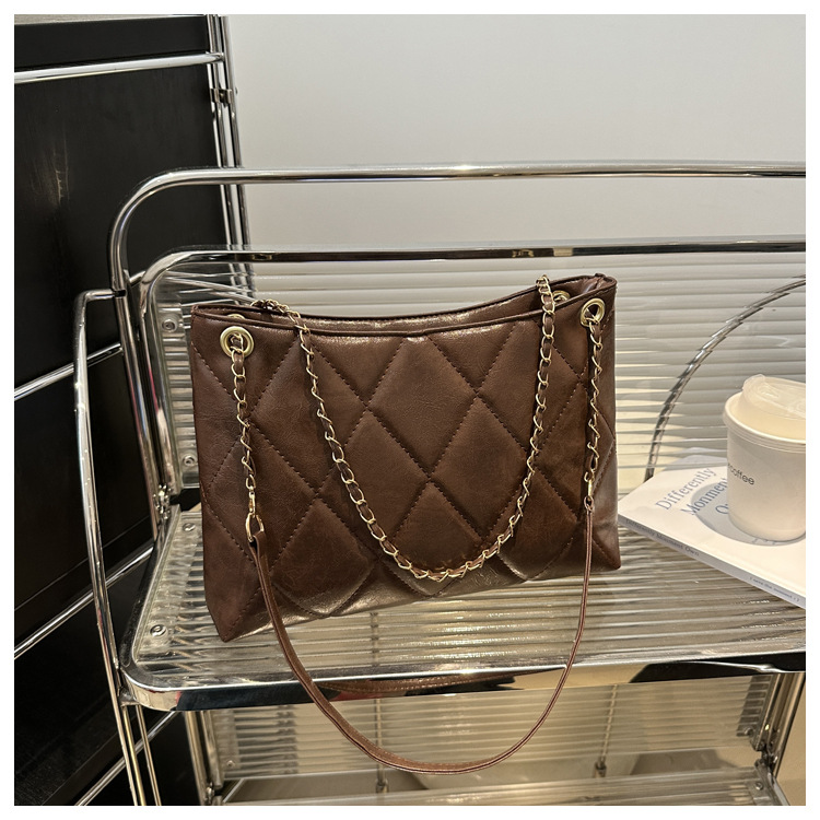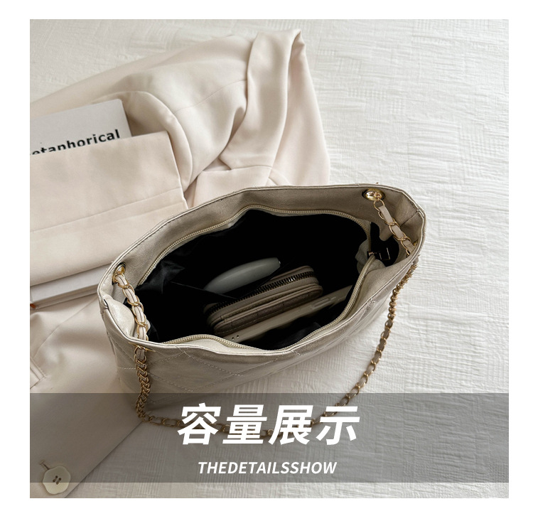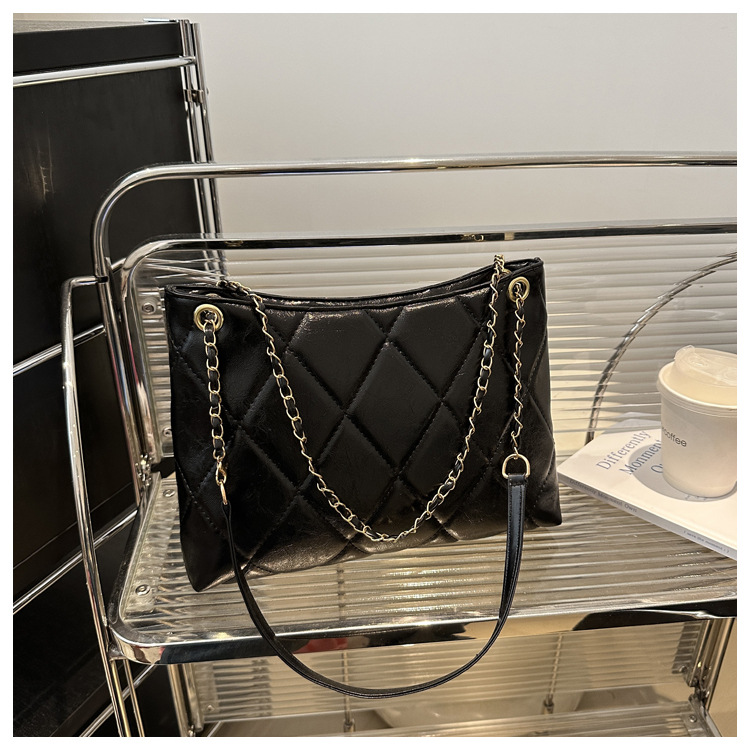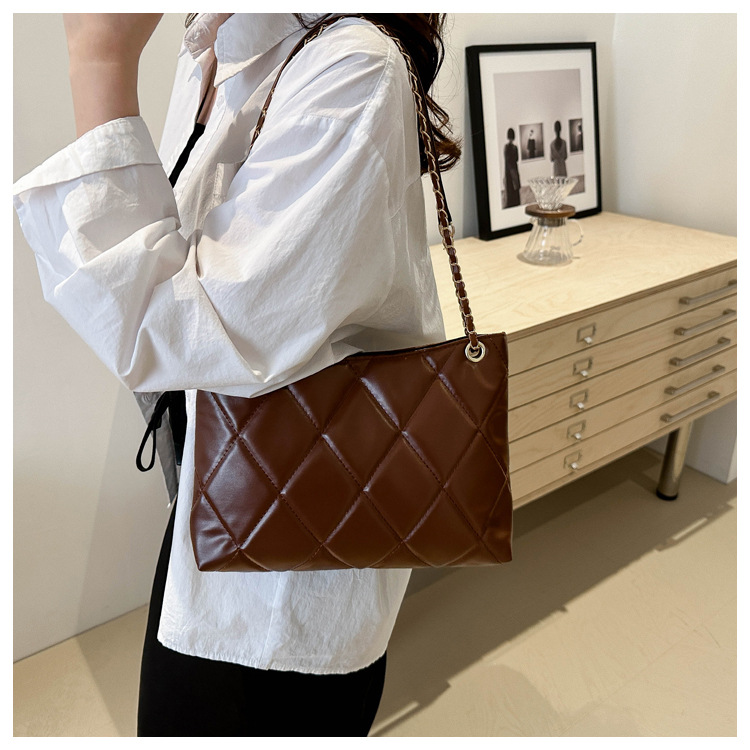 女包2025新款简约时尚大容量菱格单肩包小香风女士链条斜挎托特包