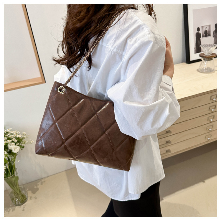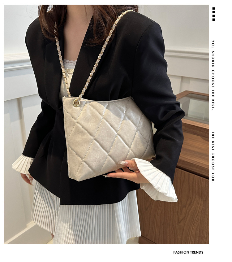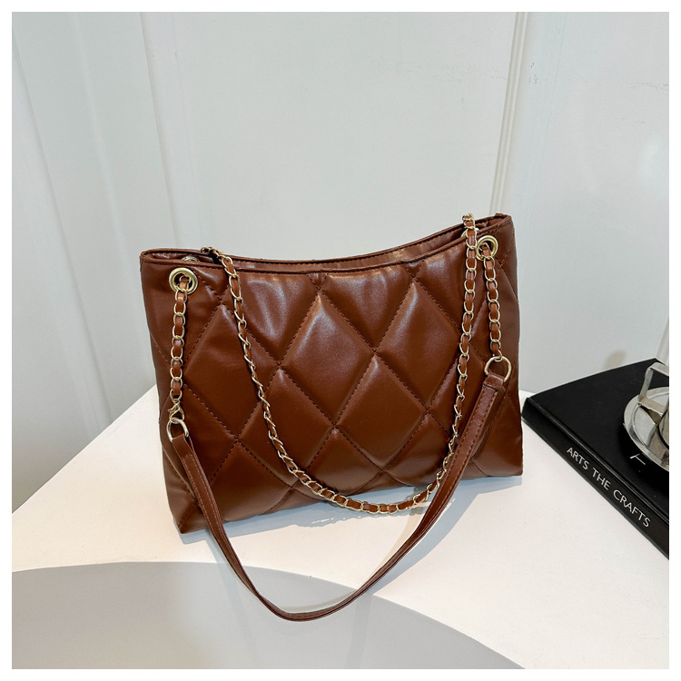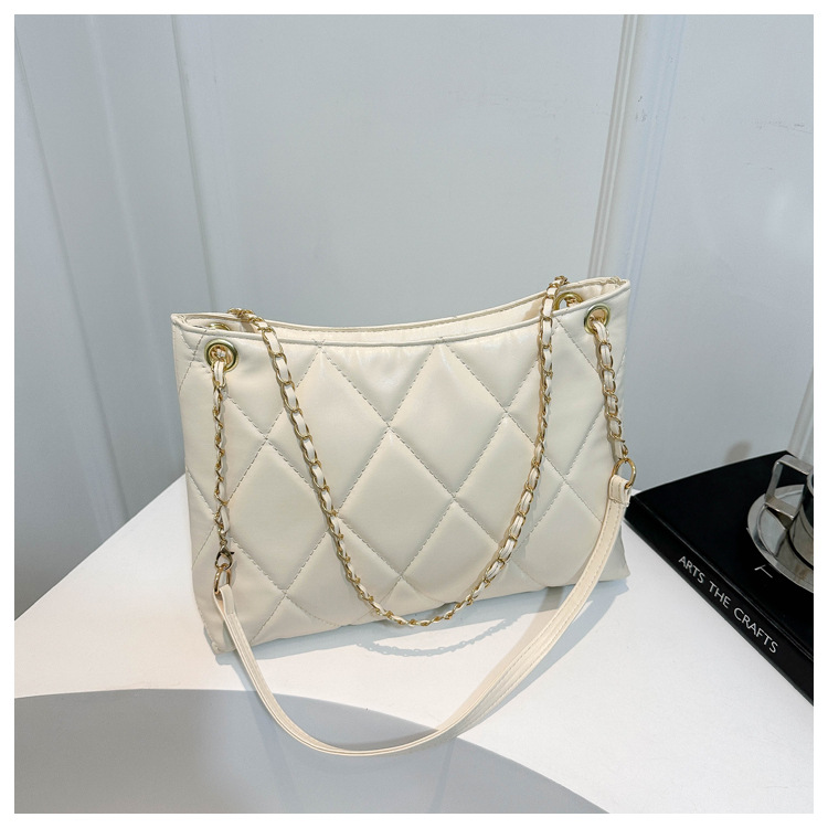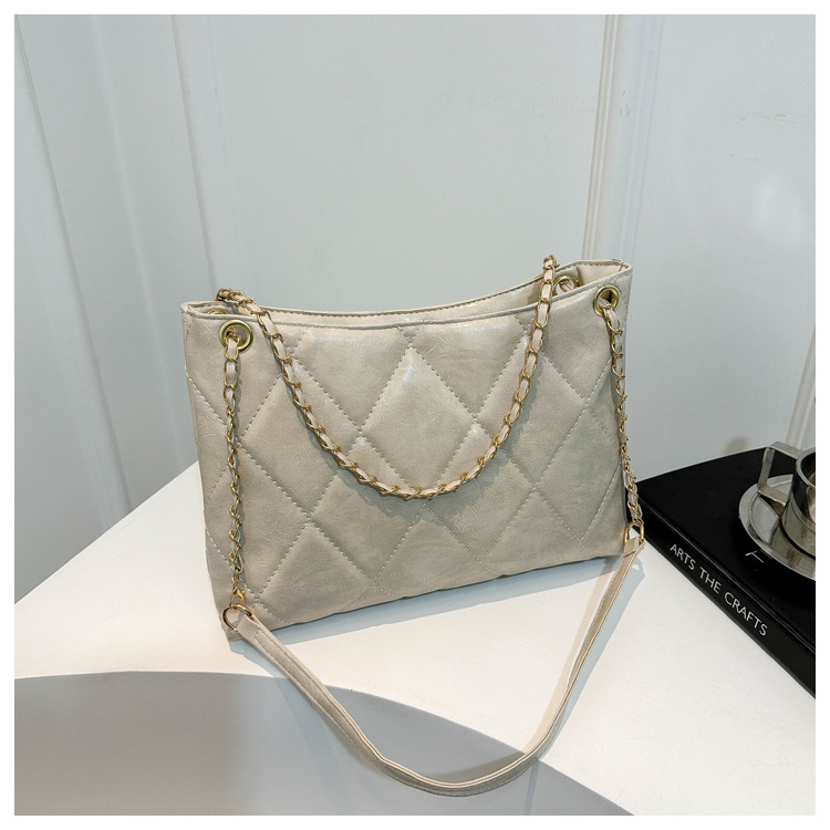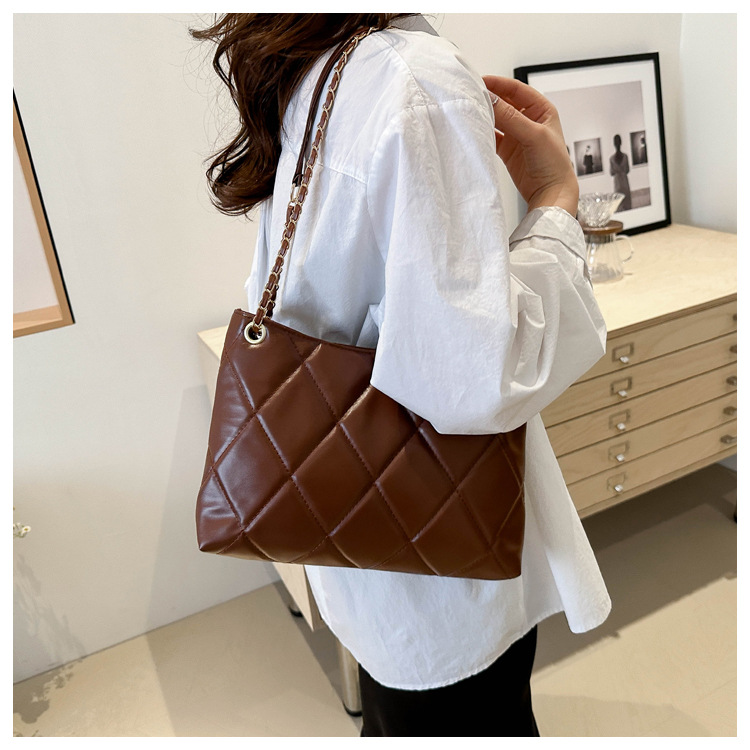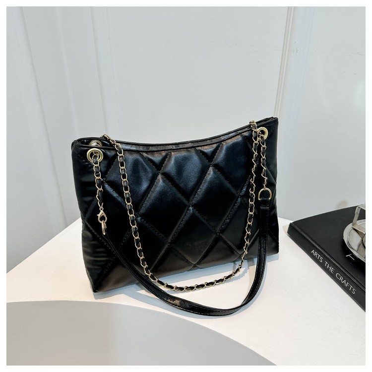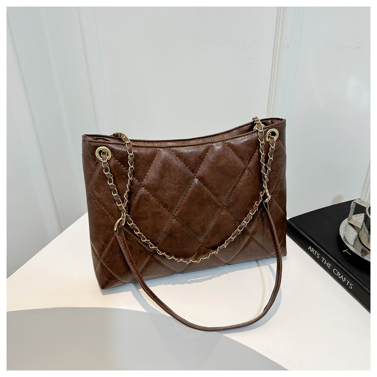 女包2025新款简约时尚大容量菱格单肩包小香风女士链条斜挎托特包