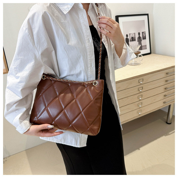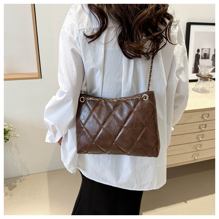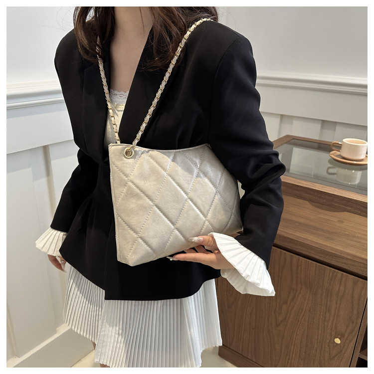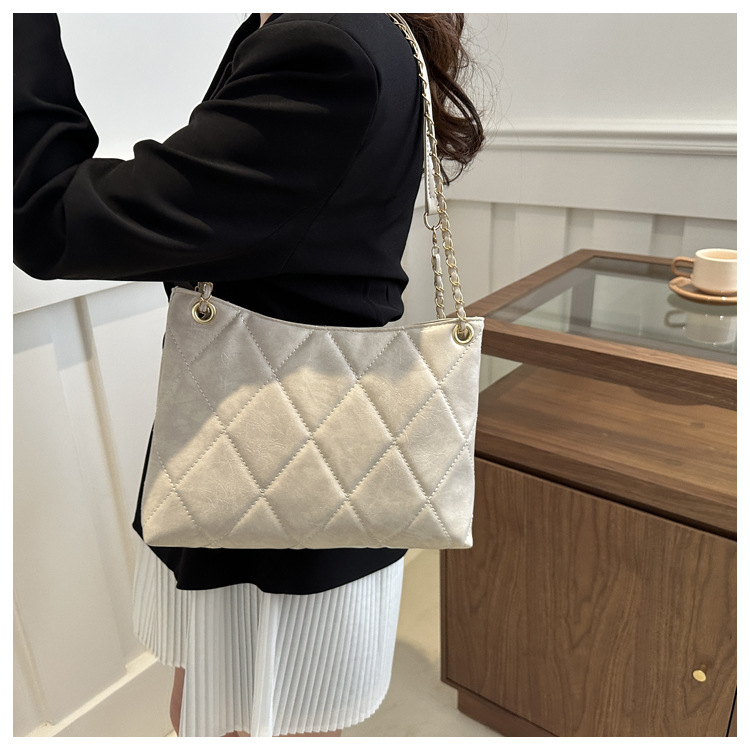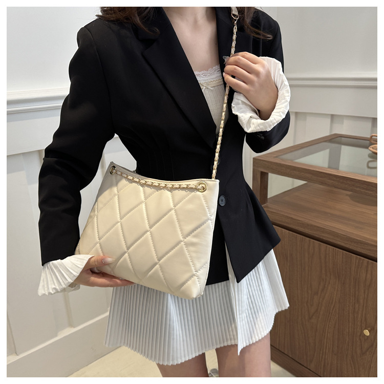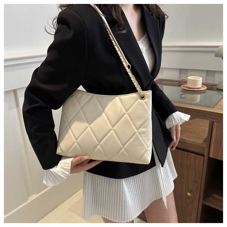 通勤ショルダークロスボディレディースバッグ 2025 新しいニッチデザイン菱形ソリッドカラー絶妙なチェーン気質バッグ