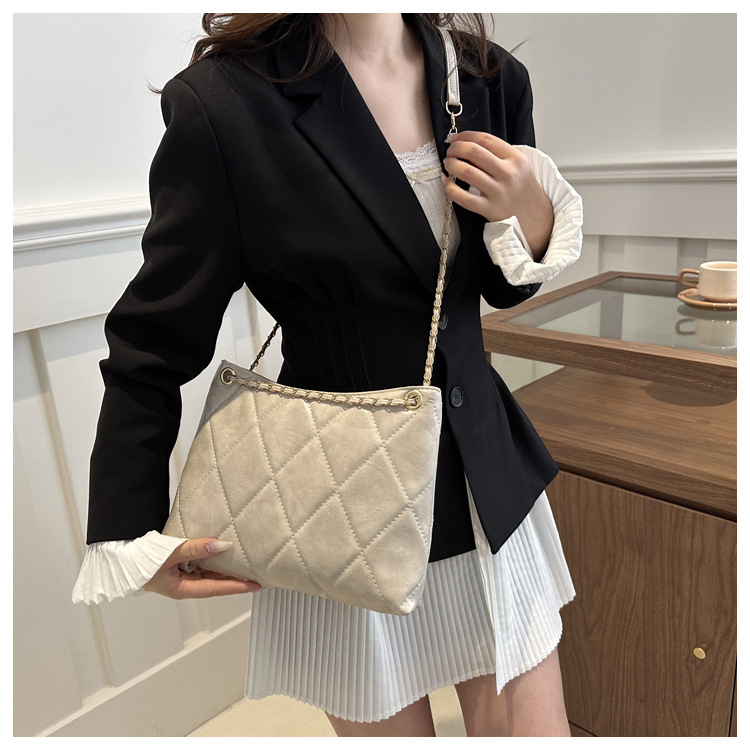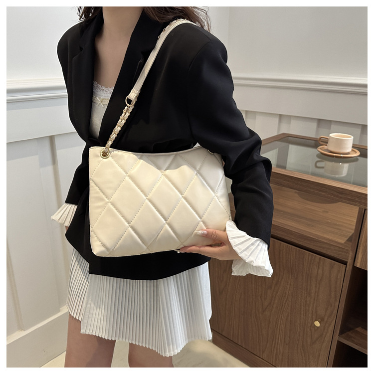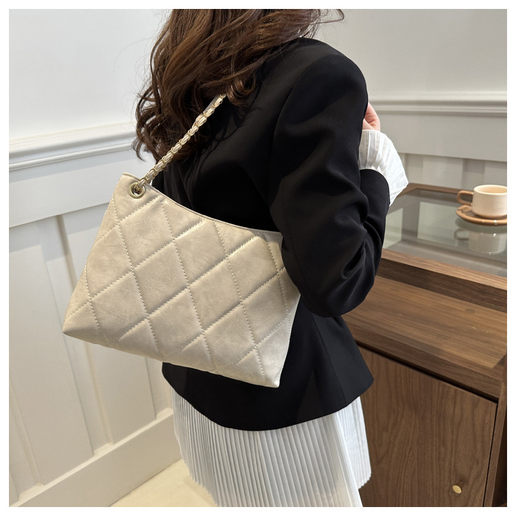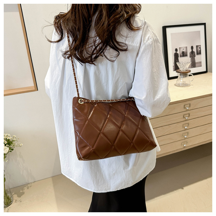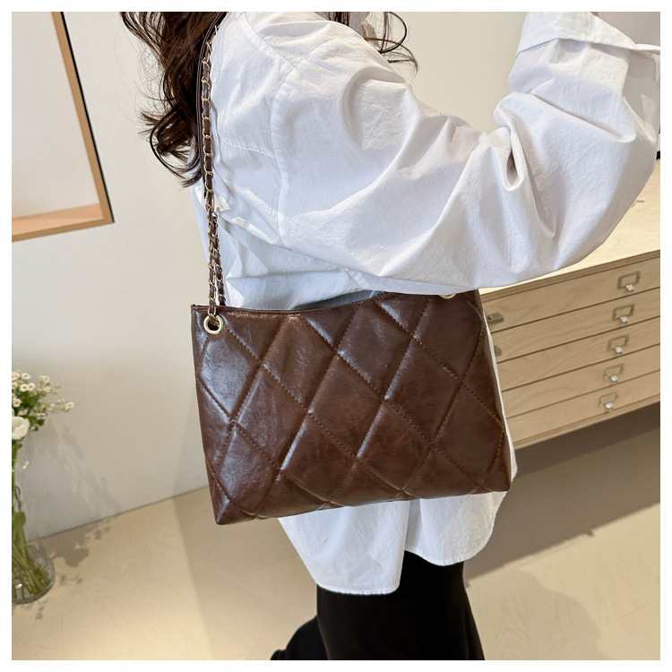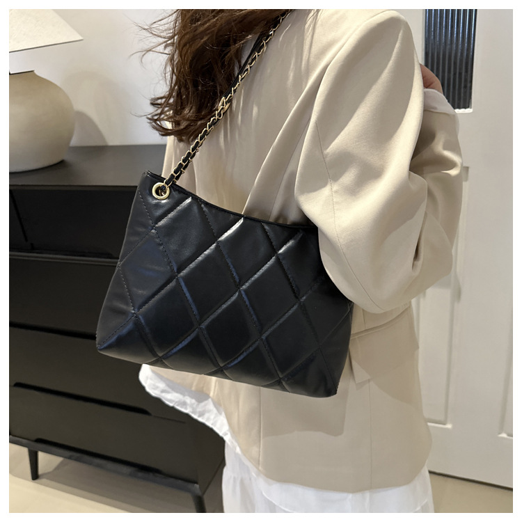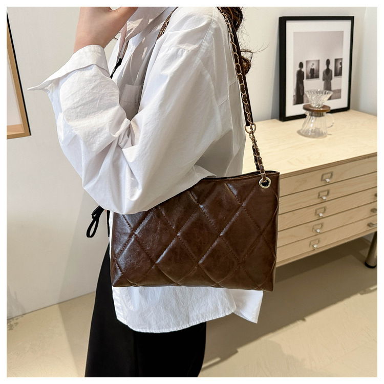 通勤ショルダークロスボディレディースバッグ 2025 新しいニッチデザイン菱形ソリッドカラー絶妙なチェーン気質バッグ