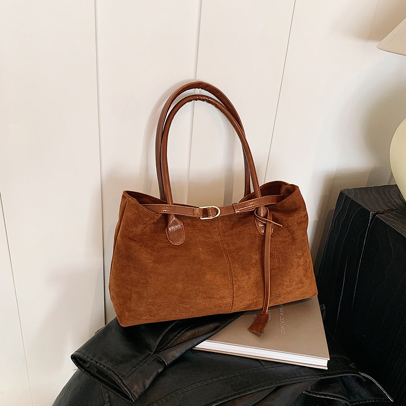 跨境大容量包女2025新款轻奢鹿皮绒单肩腋下托特包外出手提通勤包