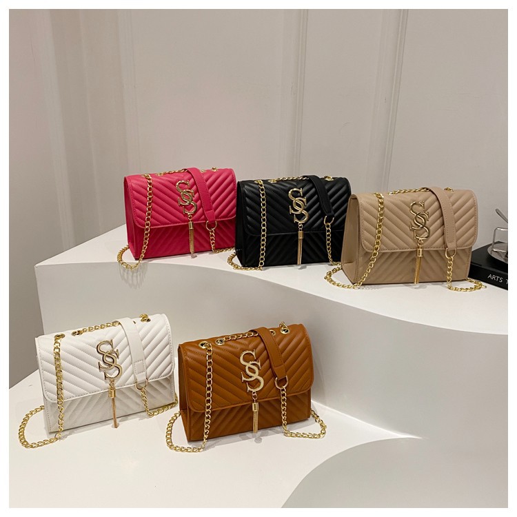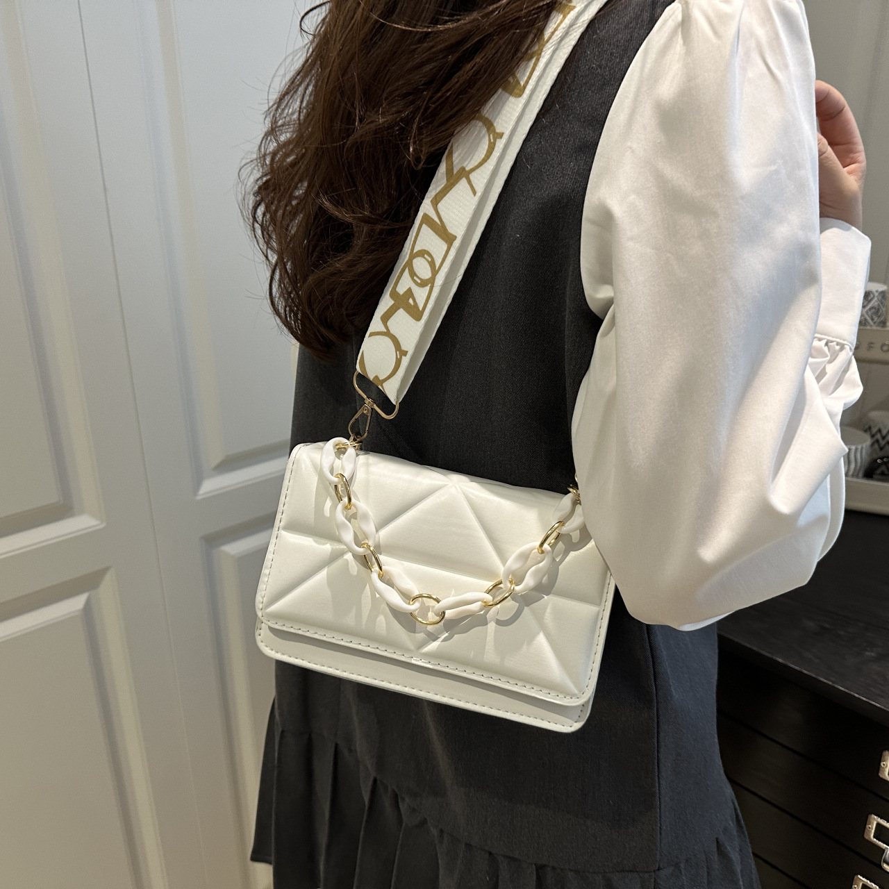 アルファベット圧痕カジュアルレディース2025新作レトロ菱格ファッションシンプルチェーン片肩斜め掛け小角カバン
