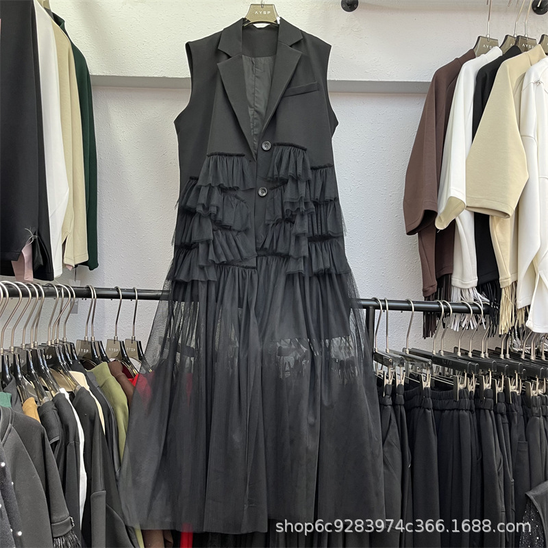 欧米風重工のホットドリルのベストのワンピースの女性2024春夏の新型の丸首の袖なしの長いタイプの修身はやせているスカートを現します。