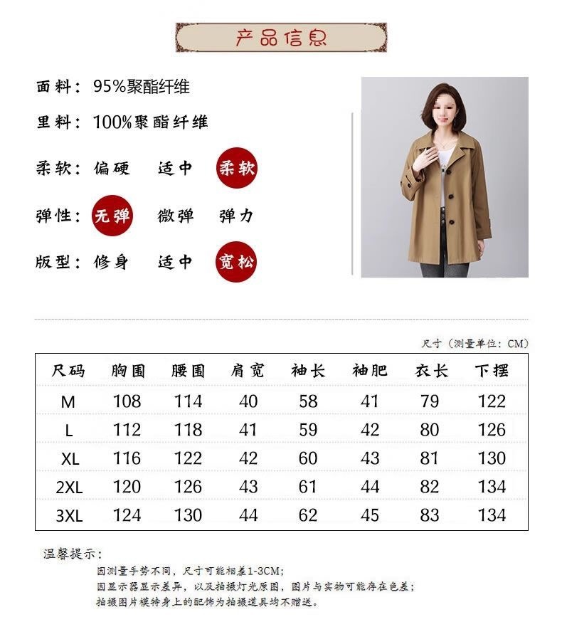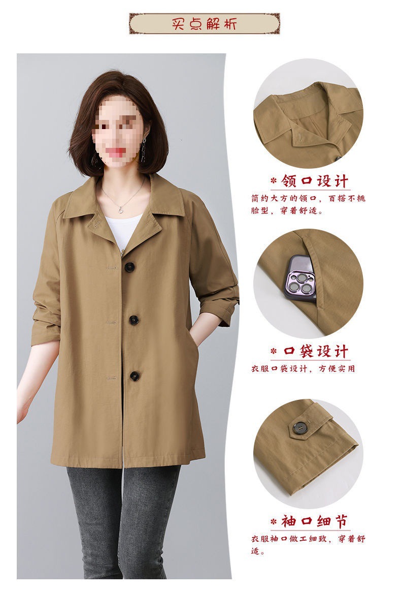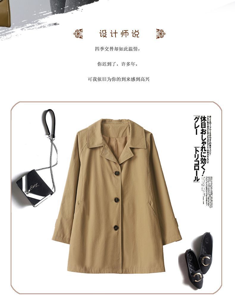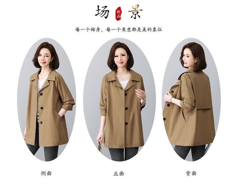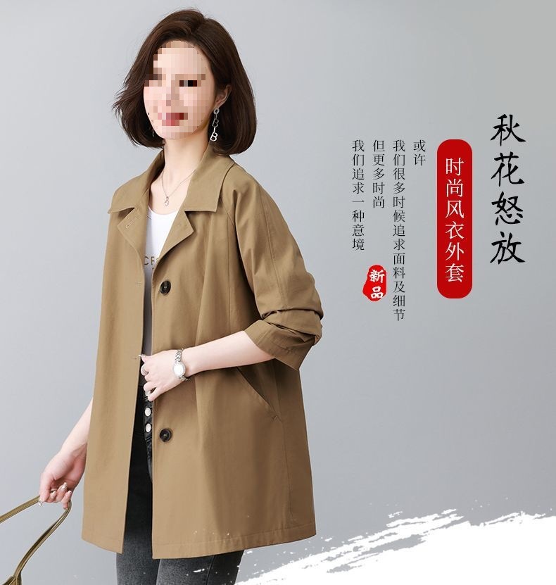 休闲风衣外套女中长款2025春秋新款休闲宽松百搭上衣潮卡其色氨纶