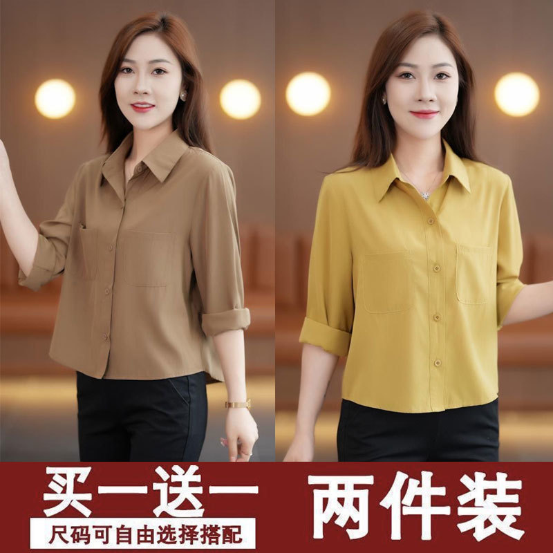 女性用長袖シャツ 2025 春と秋の無地レトロルーズファッション多用途スリムシャツ西洋スタイルシャツ