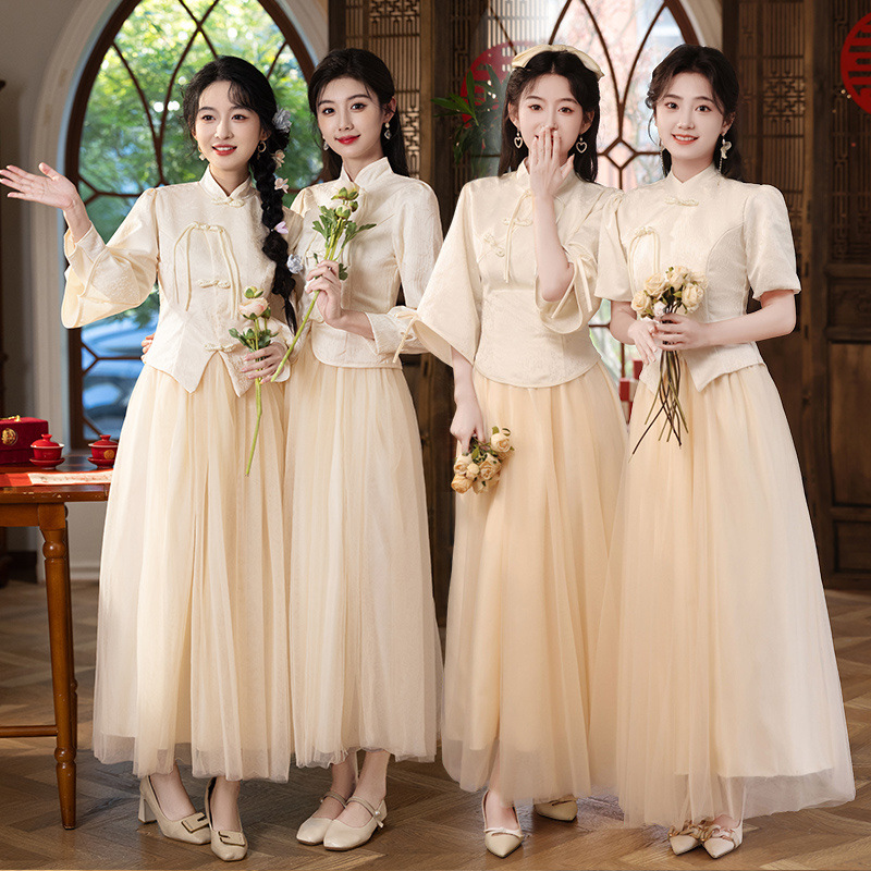 中国のブライズメイドドレス 2025 新しいシャンパンカラー痩身中国風の姉妹ドレスブライズメイドグループ大きいサイズ Xiuhe 気質ドレス