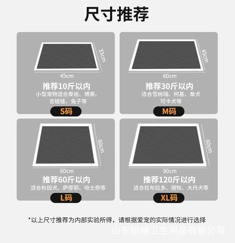 规格 四角定位60*130cm20片,英文包装竹炭背胶特厚款60*60cm40片,跨境尺寸71*86cm 50片,跨境尺寸71*86cm 60片,黑膜竹炭60*60cm40片,45*60cm20片,彩包竹炭款尿垫S号33x45cm 100片,彩包竹炭款尿垫M号45x60cm 50片,彩包竹炭款尿垫L号60x60cm 40片,彩包竹炭款尿垫XL号60x90cm 20片,跨境彩包白膜S码 33*45 100片,跨境彩包白膜M码 45*60 50片,跨境彩包白膜L码 60*60 40片,跨境彩包白膜XL码 60*90 20片,跨境黑红彩包S100片,跨境黑红彩包M码 45*60 50片,跨境黑红彩包L码 60*60 40片,跨境黑红彩包XL码 60*90 20片,经济款S码 33*45 100片,经济款M码 45*60 50片,经济款L码 60*60 40片,经济款XL码 60*90 20片,80*120cm20片,80*150cm20片,常规款S码 33*45 100片,常规款M码 45*60 50片,常规款L码 60*60 40片,常规款XL码 60*90 20片