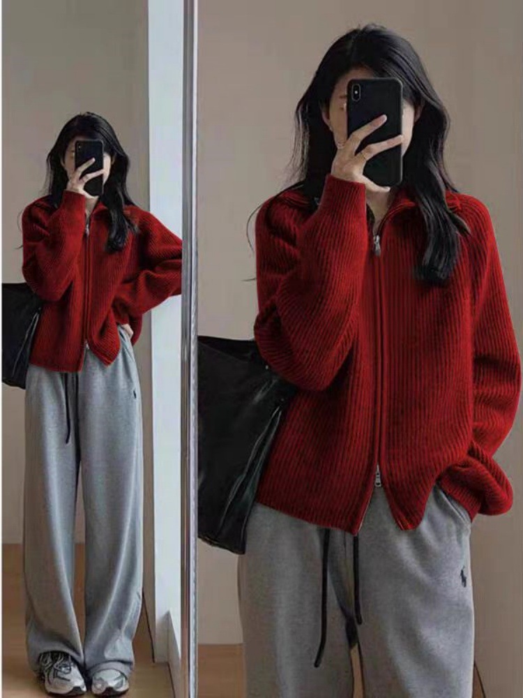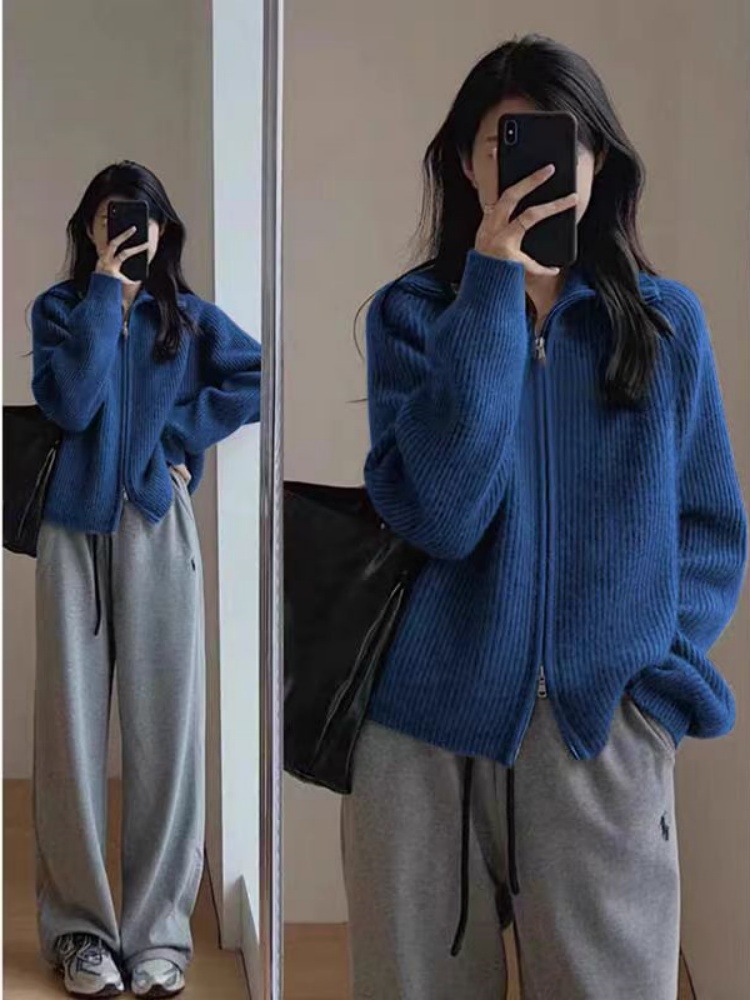 ヘビー秋と冬の新しいウールのセーターの女性のカーディガン 100 ジッパーカシミヤラペルセーターニットルーズジャケット肥厚