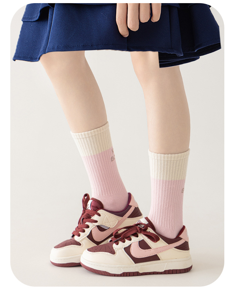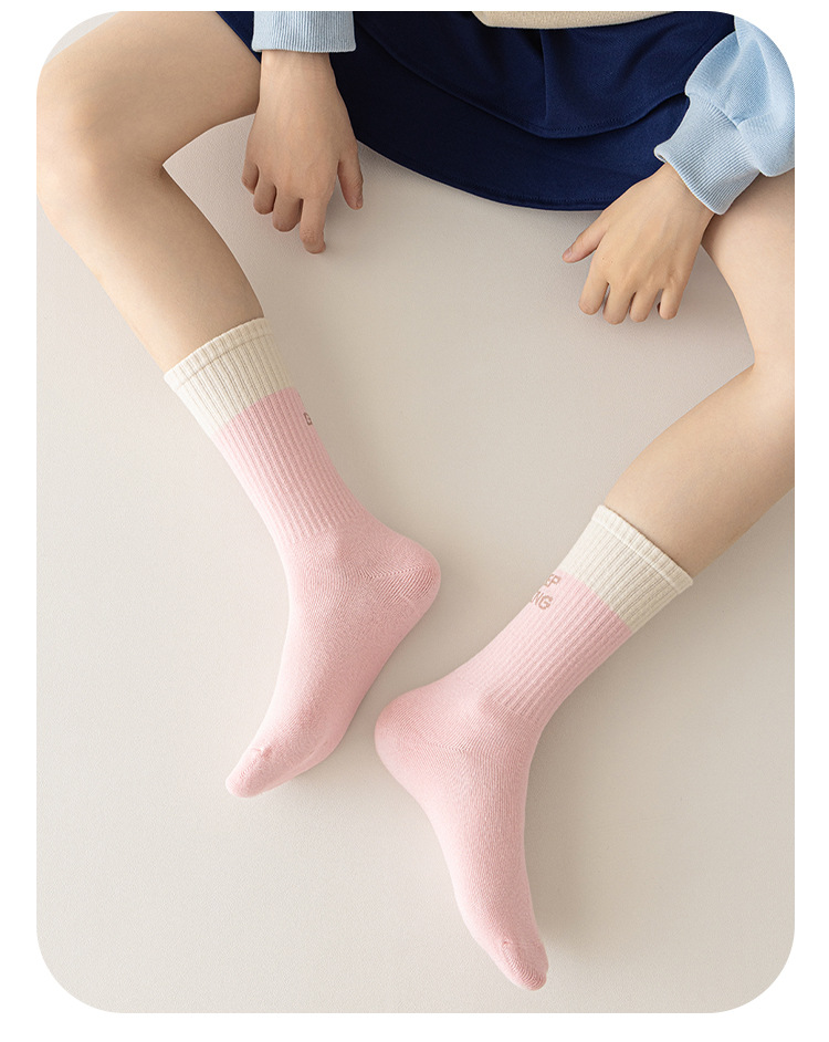 女の子の靴下春と秋のアルファベットのファッションの靴下の子供の靴下の中で靴下の中で大きい子供のピンクの愛の運動の学生の綿の靴下