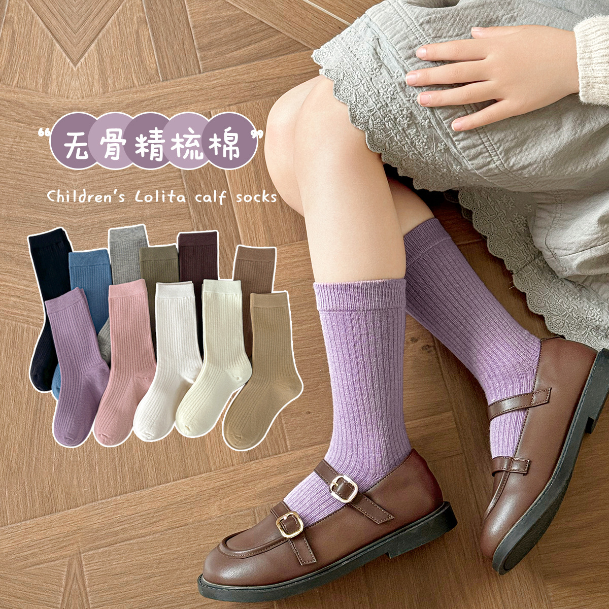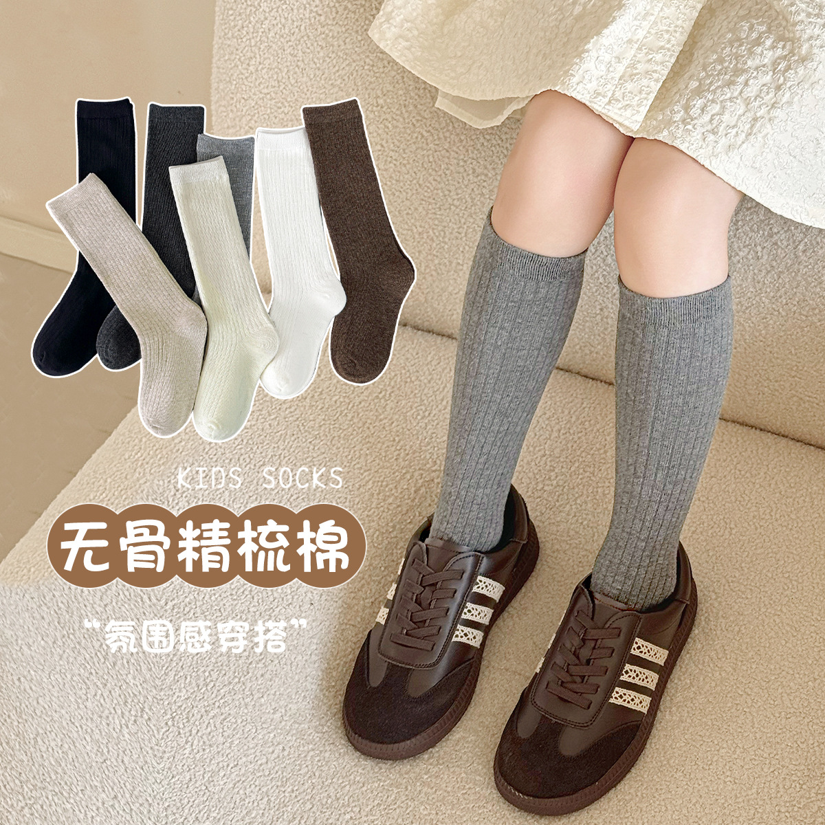 敏榴秋冬女童小腿袜无骨中筒袜精梳棉春秋儿童袜子长筒袜纯色批发