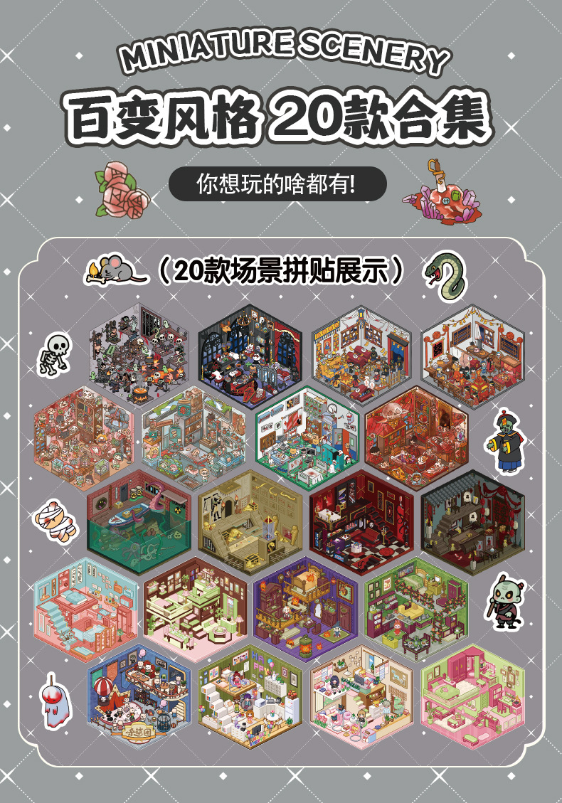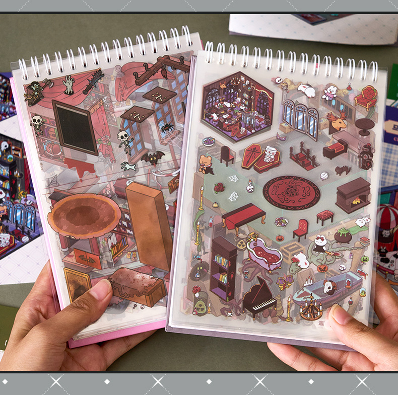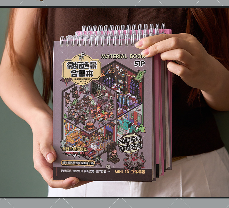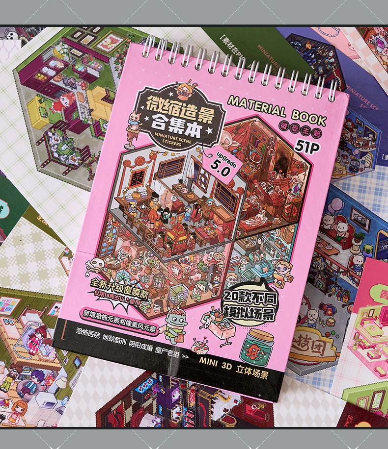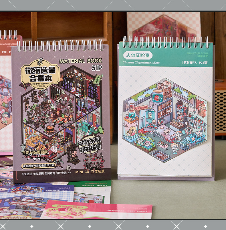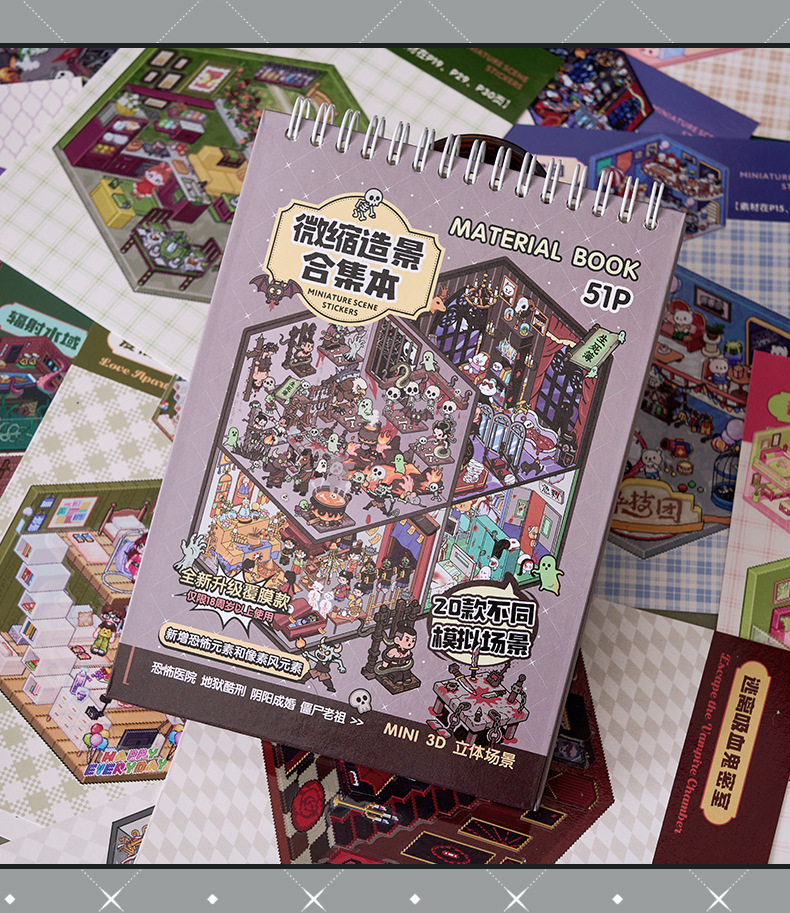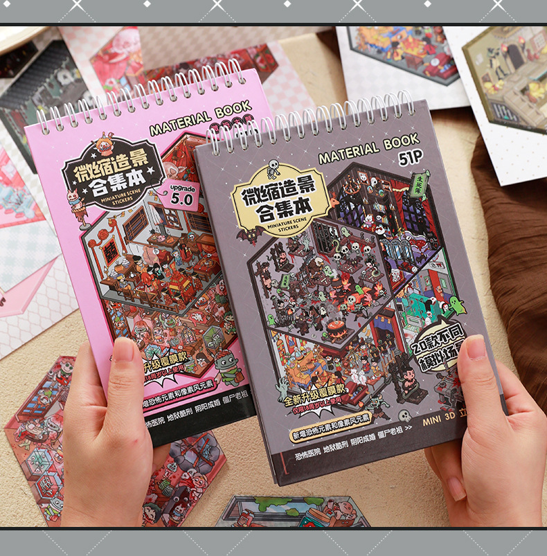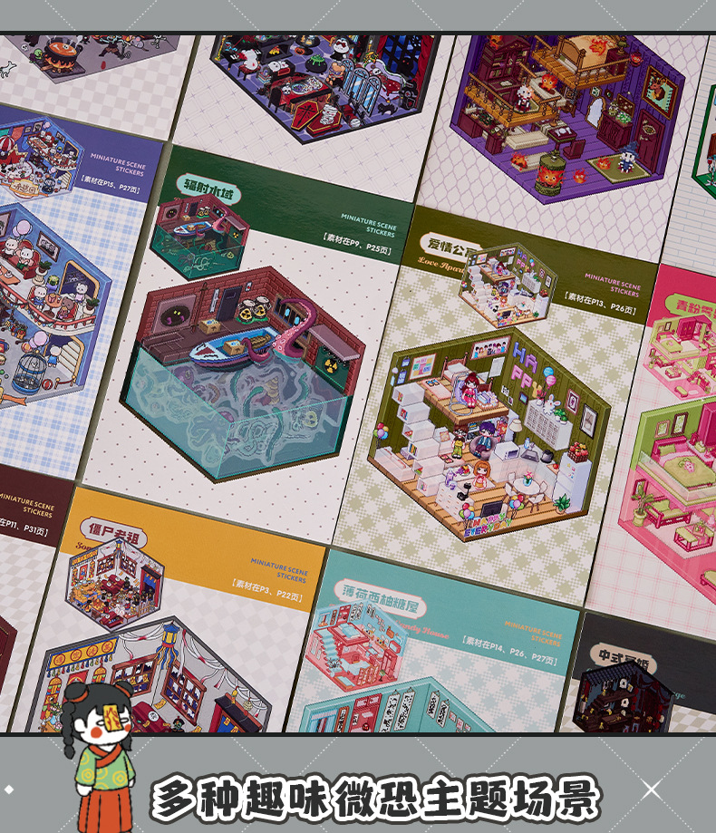 微恐风微缩场景贴纸合集本手工DIY全套造景贴纸3D立体小屋贴纸书
