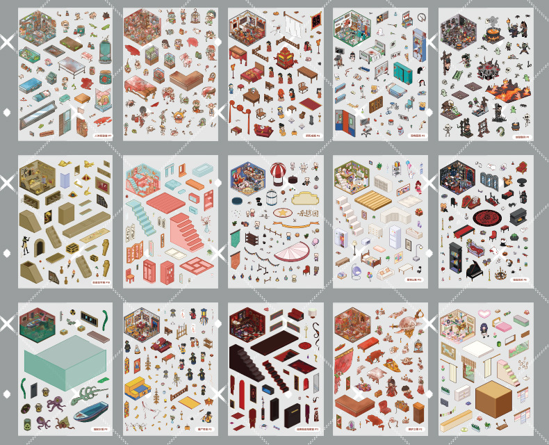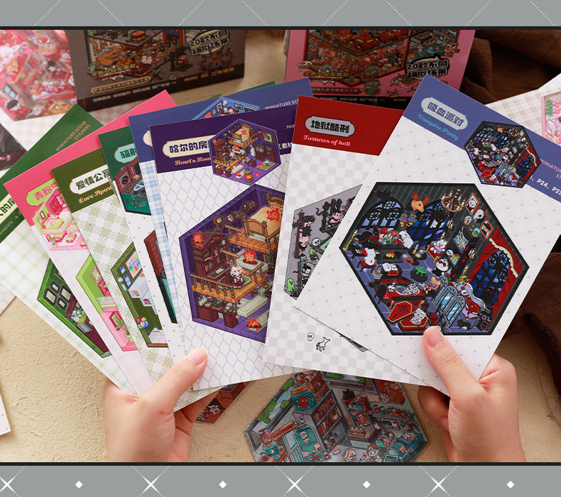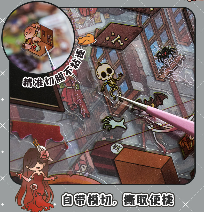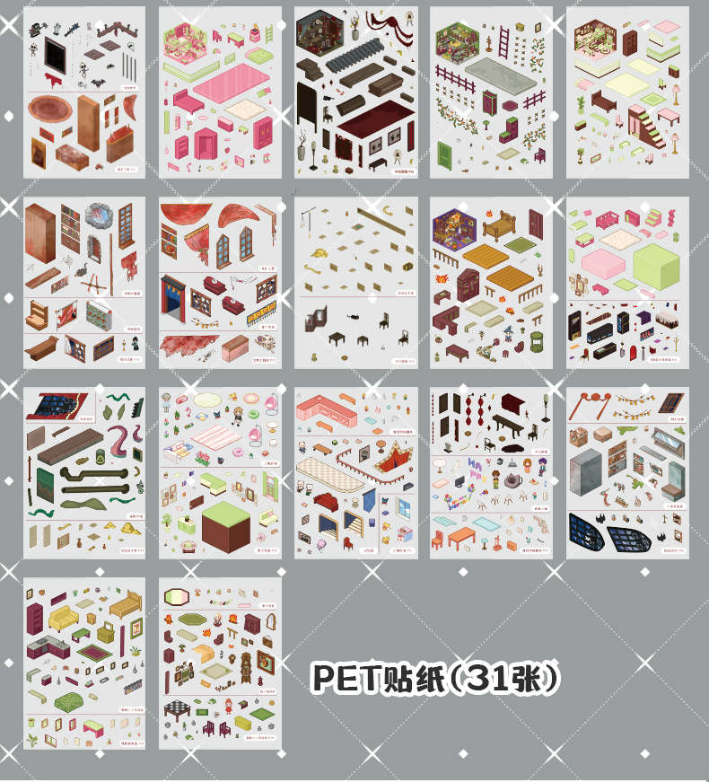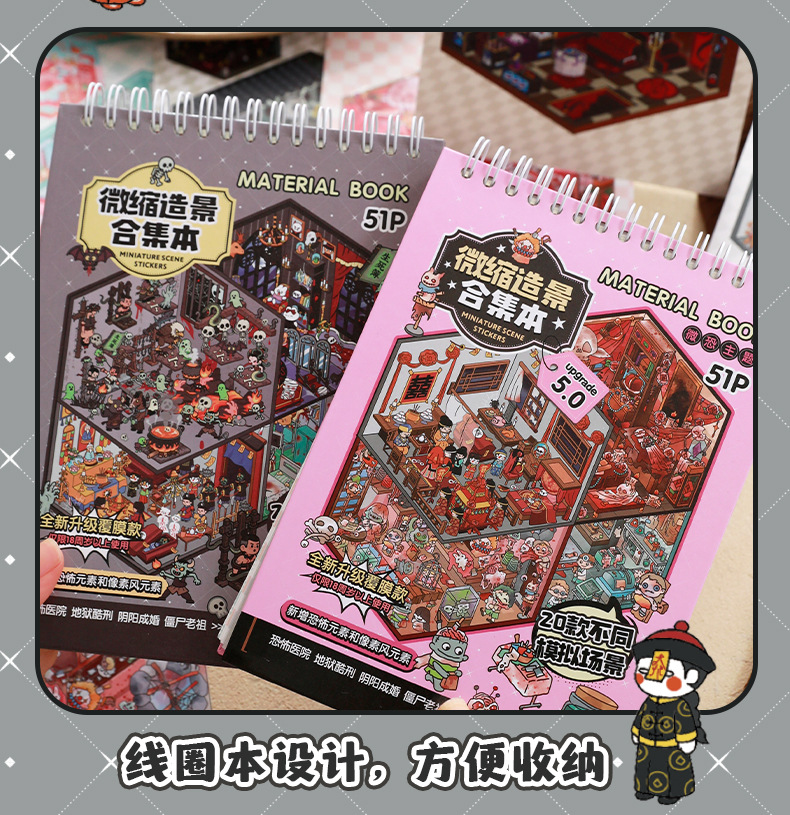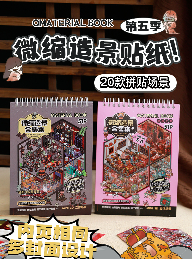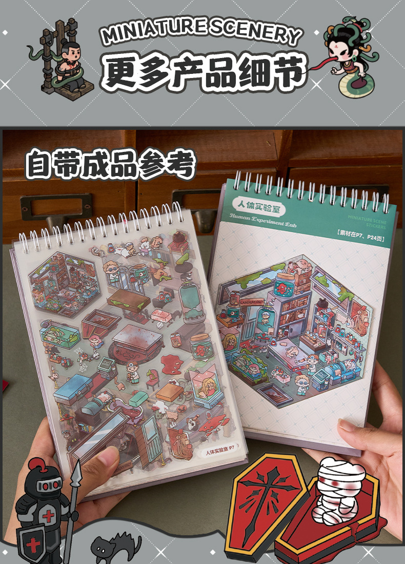 微恐风微缩场景贴纸合集本手工DIY全套造景贴纸3D立体小屋贴纸书