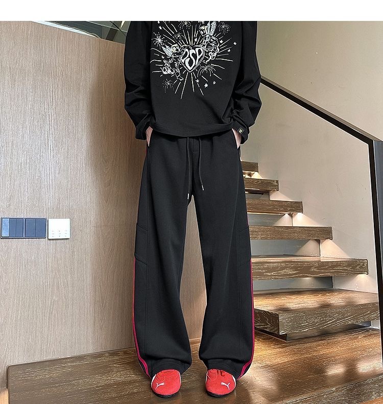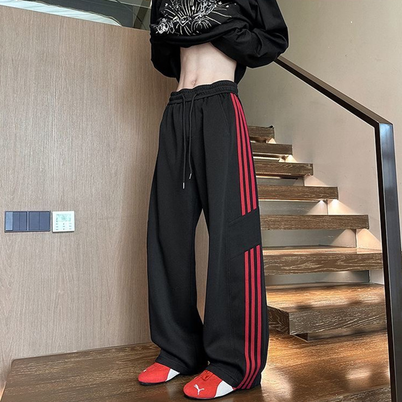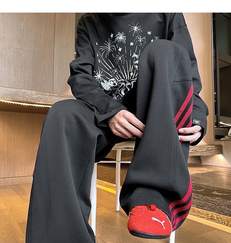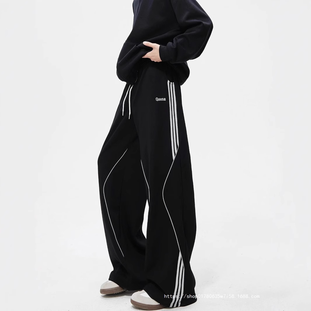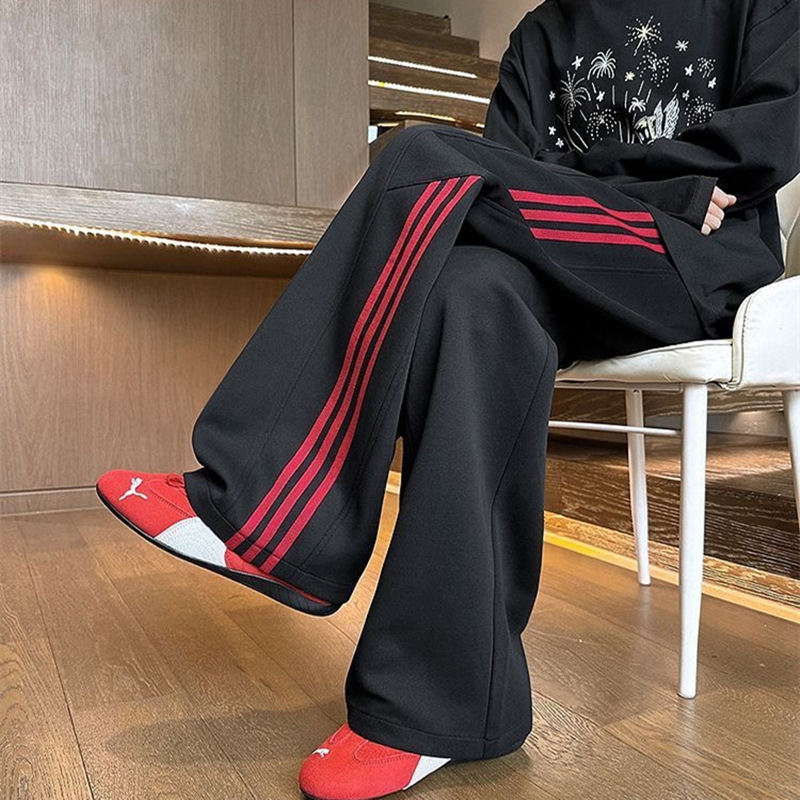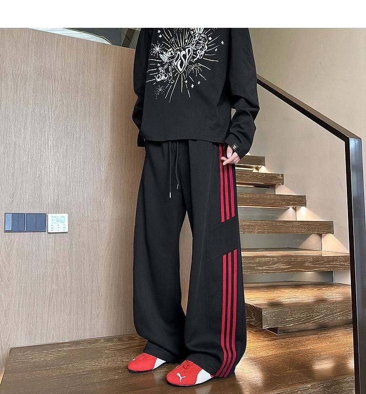 2025新款美式国潮条纹运动裤子学生青少年设计感卫裤高街百搭直筒