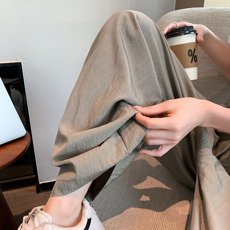 氷の糸の工装のズボンの女性の夏の薄いタイプの外はレジャーのジョギングの足首のズボンを着ています。