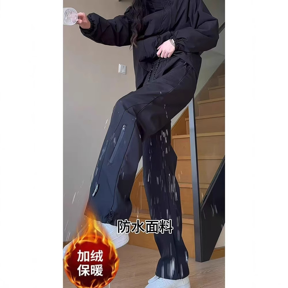 ベルベットカジュアルパンツ屋外防水防風直筒工装春秋冬突撃ズボン女性スポーツパンツ登山ズボン