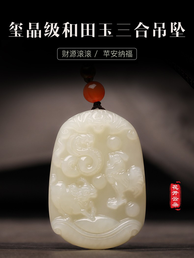 和田玉三合生肖玉石吊坠鼠龙猴虎马狗兔羊猪蛇鸡牛挂件玉坠配证书