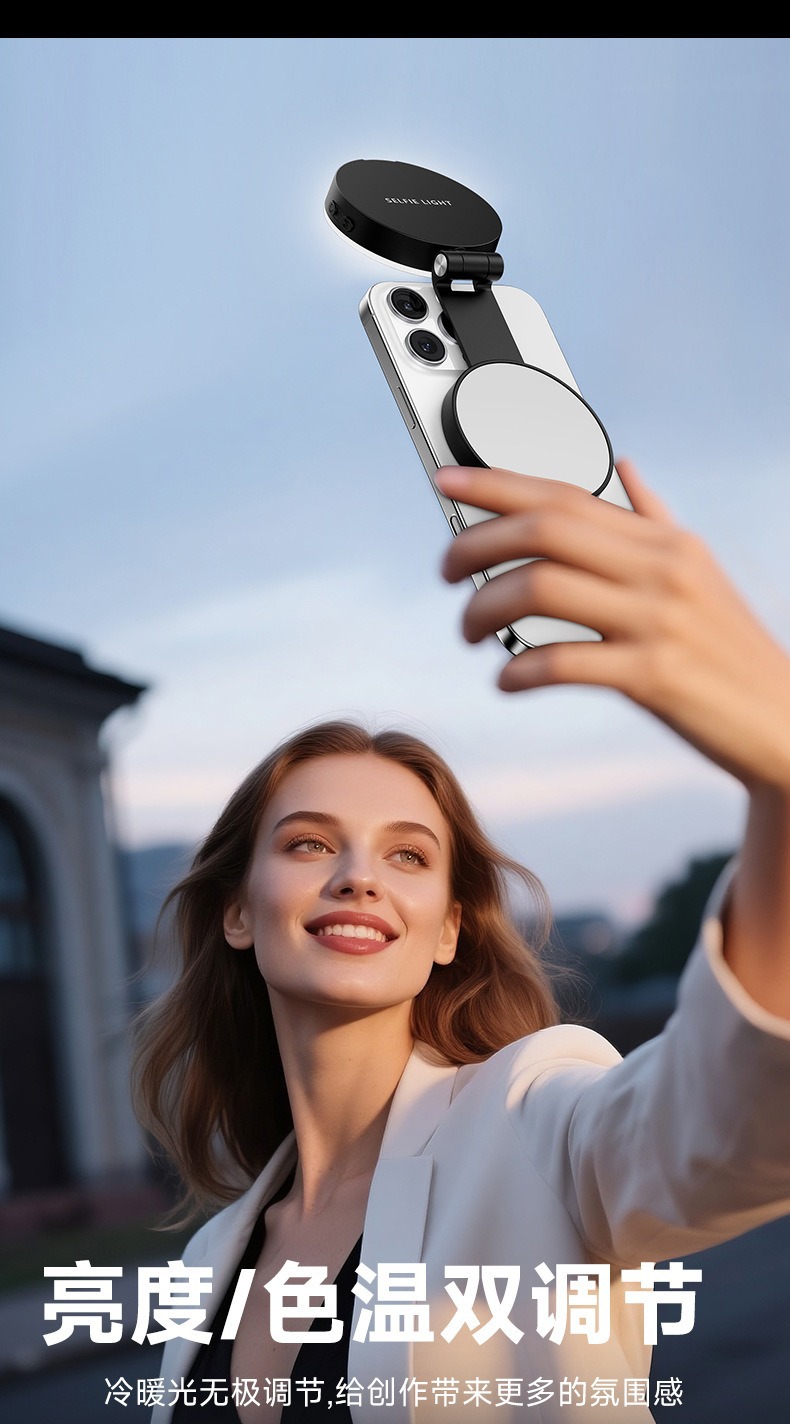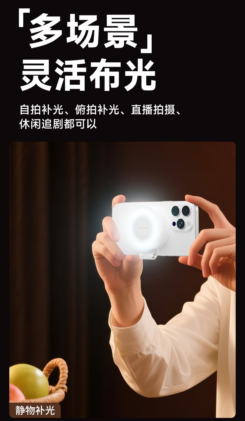 新款磁吸Magsefe手机补光灯直播摄影灯视频会议直播led便携补光灯