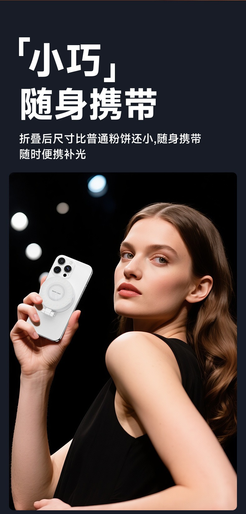 手机磁吸自拍补光灯直播拍照迷你便携补妆镜可折叠口袋灯led灯