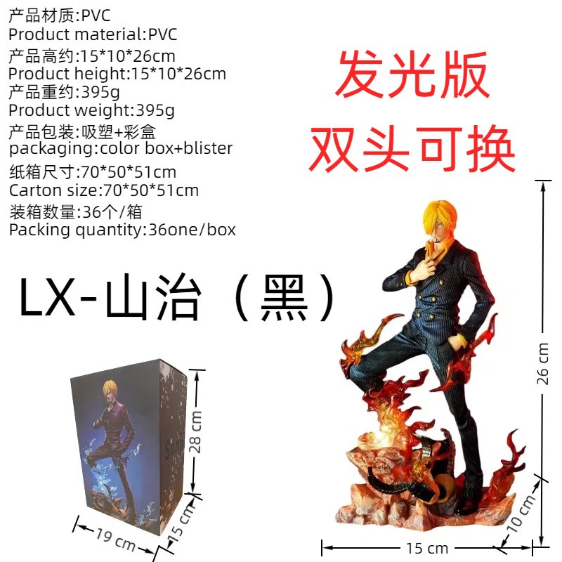 海贼王【优质发光版】LX山治双翼山治 双头可换 GK手办雕像动漫