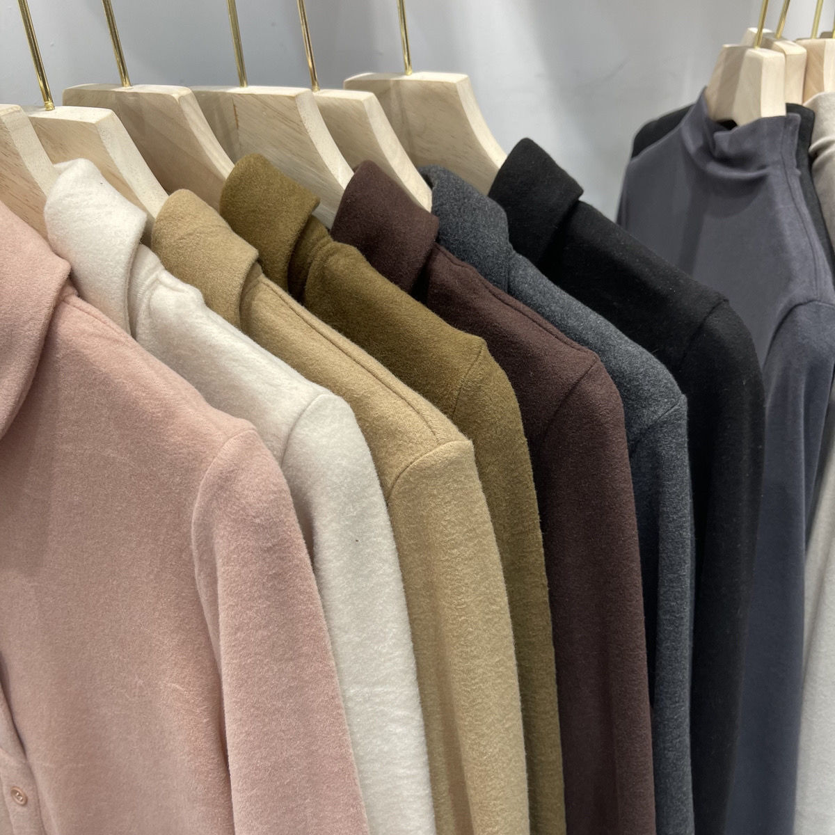 秋冬加厚双面德绒衬衫女纯色磨毛保暖半高领内搭打底长袖衬衣开衫