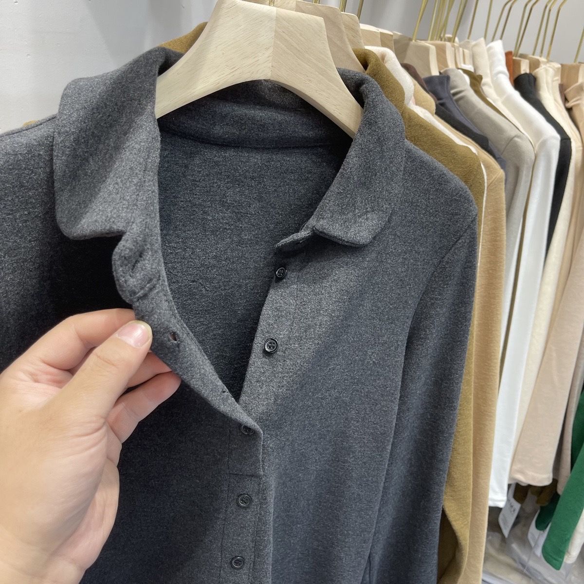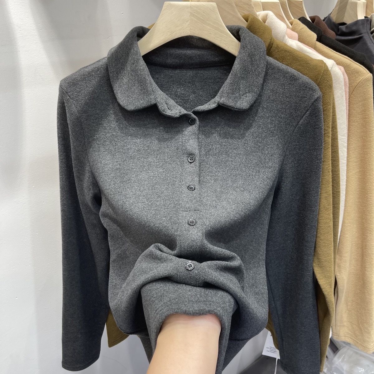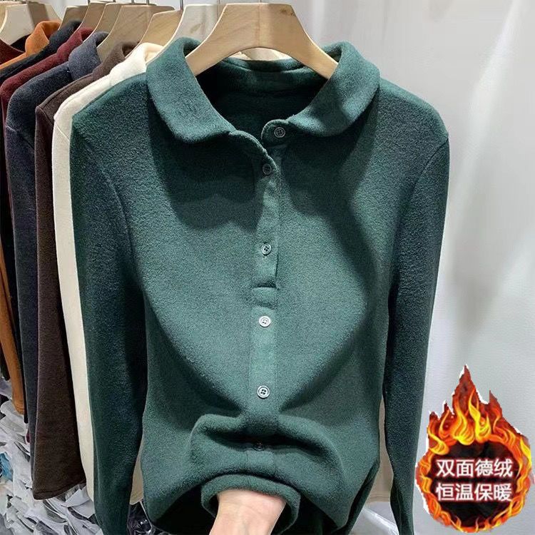 洋气阳离子德绒衬衣女Polo领秋冬新款自发热打底保暖小衫内搭短款