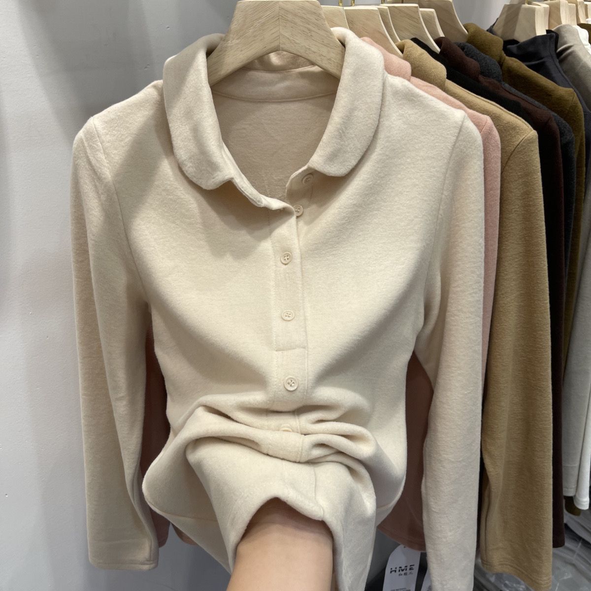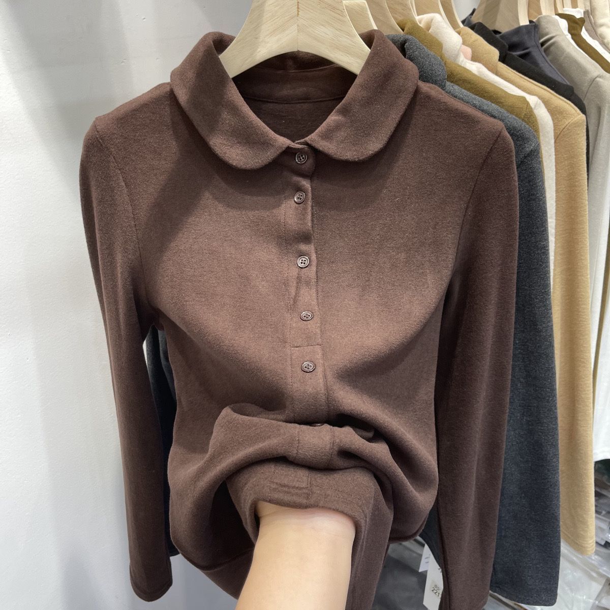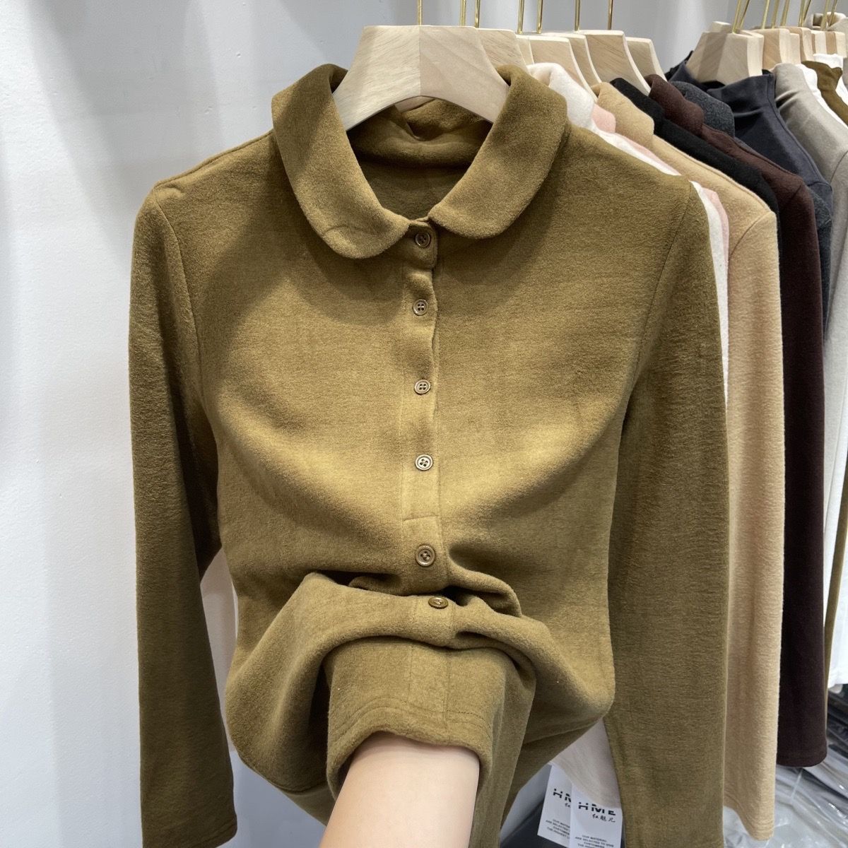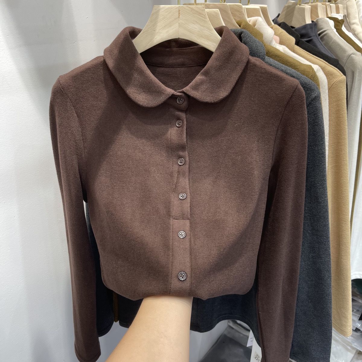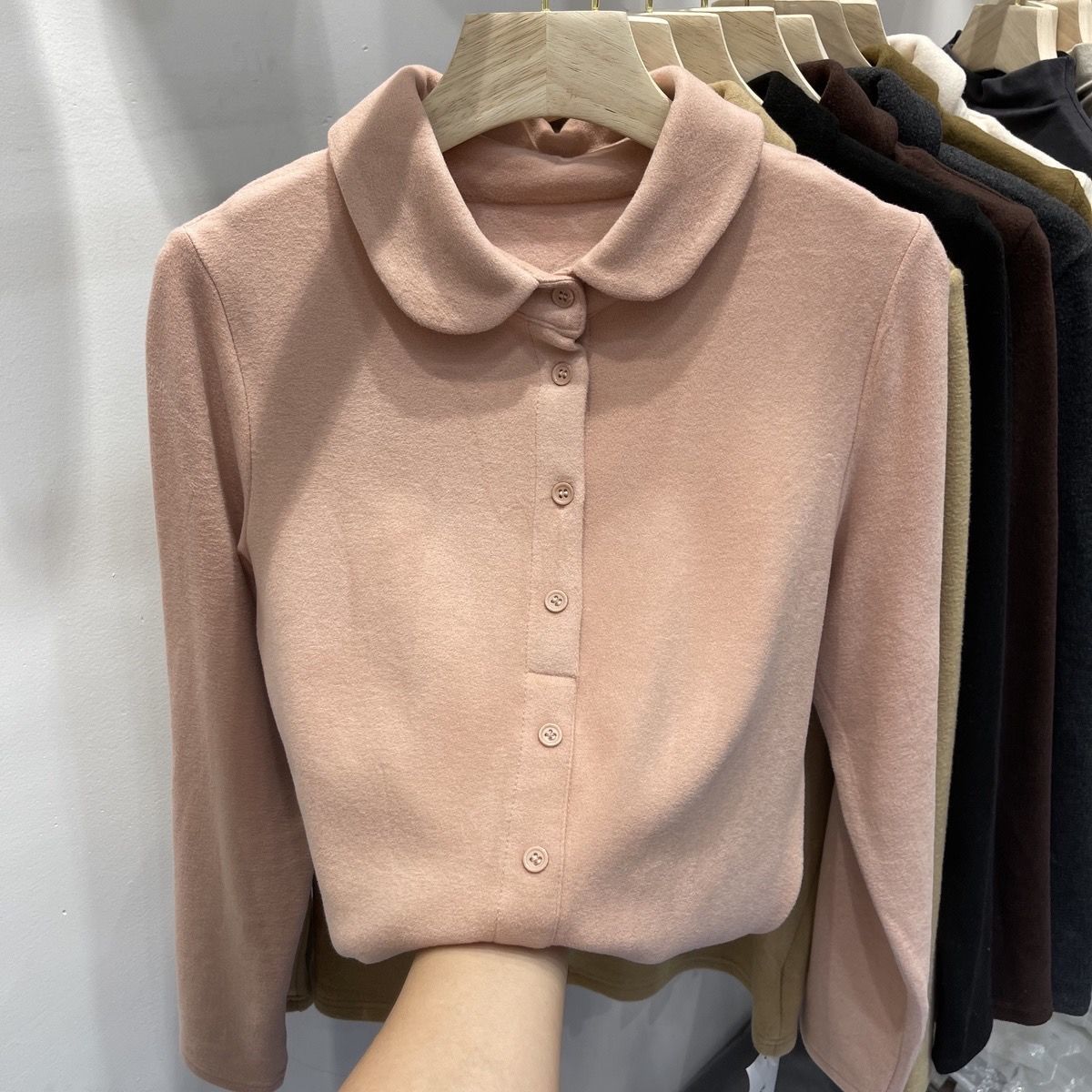 2024秋冬高密加厚保暖德绒衬衫女长袖娃娃领柔软亲肤打底衫上衣