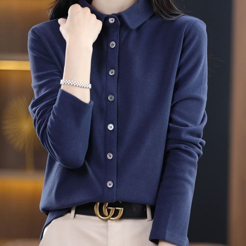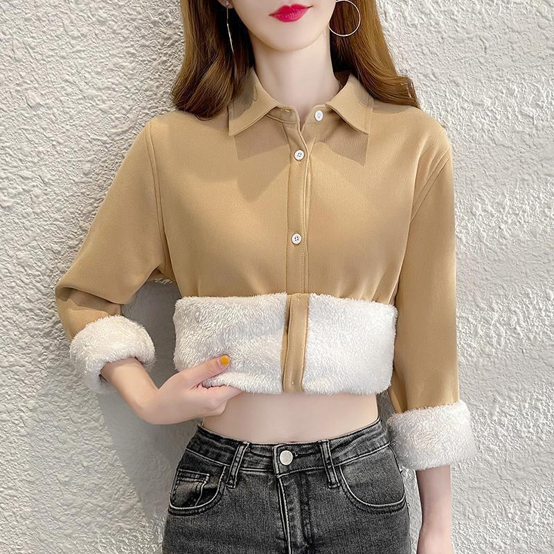 上衣2025德绒感翻领单排扣加厚衬衣女保暖设计新款秋冬打底衫套头