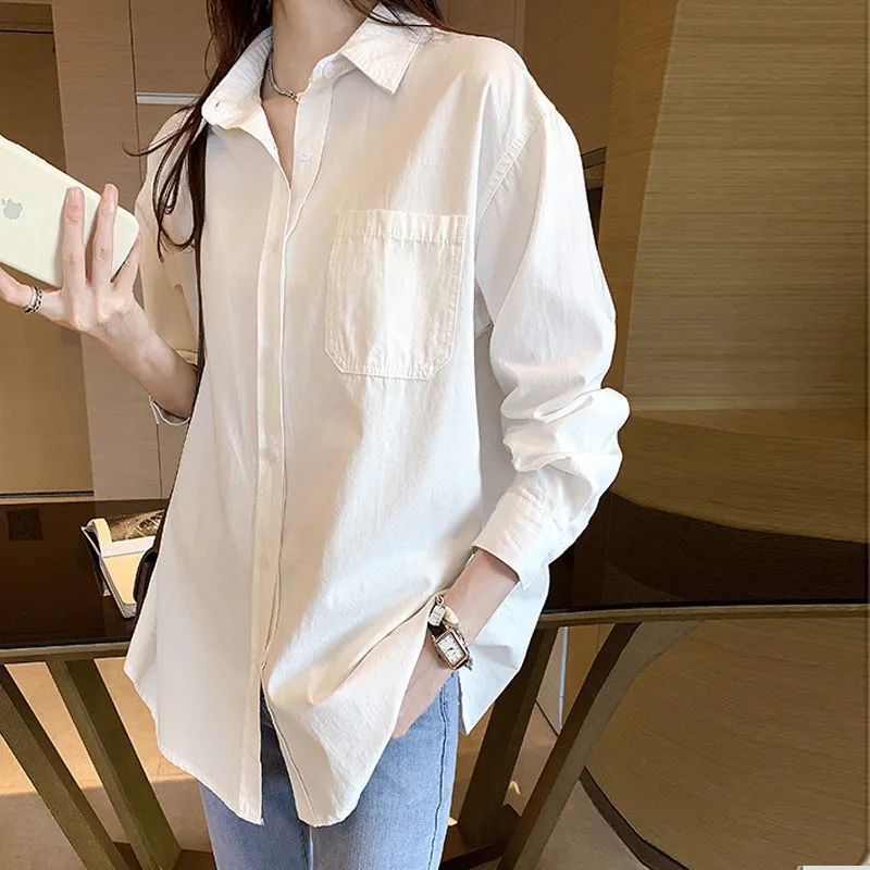 白いシャツの女性の中に重ね着の雰囲気があります。