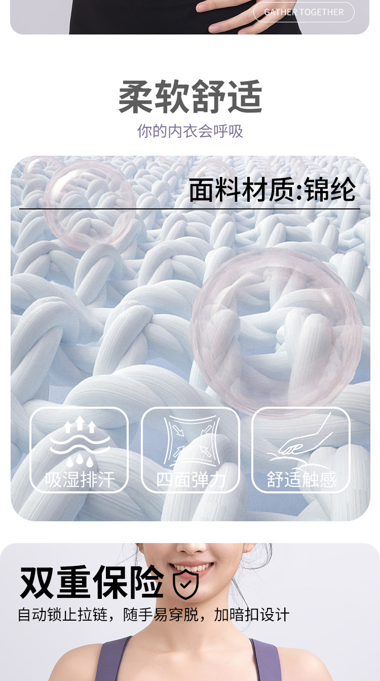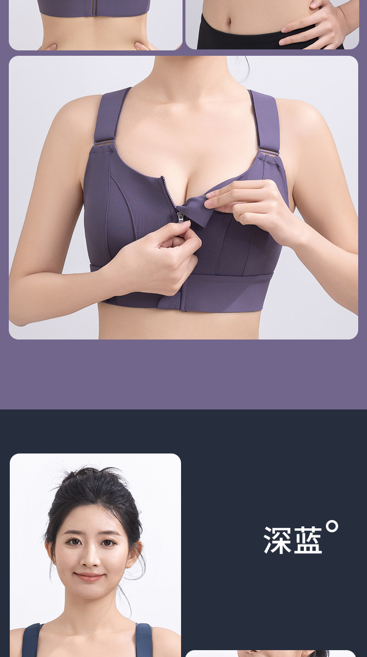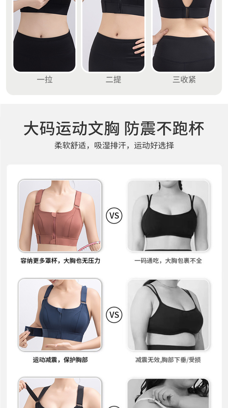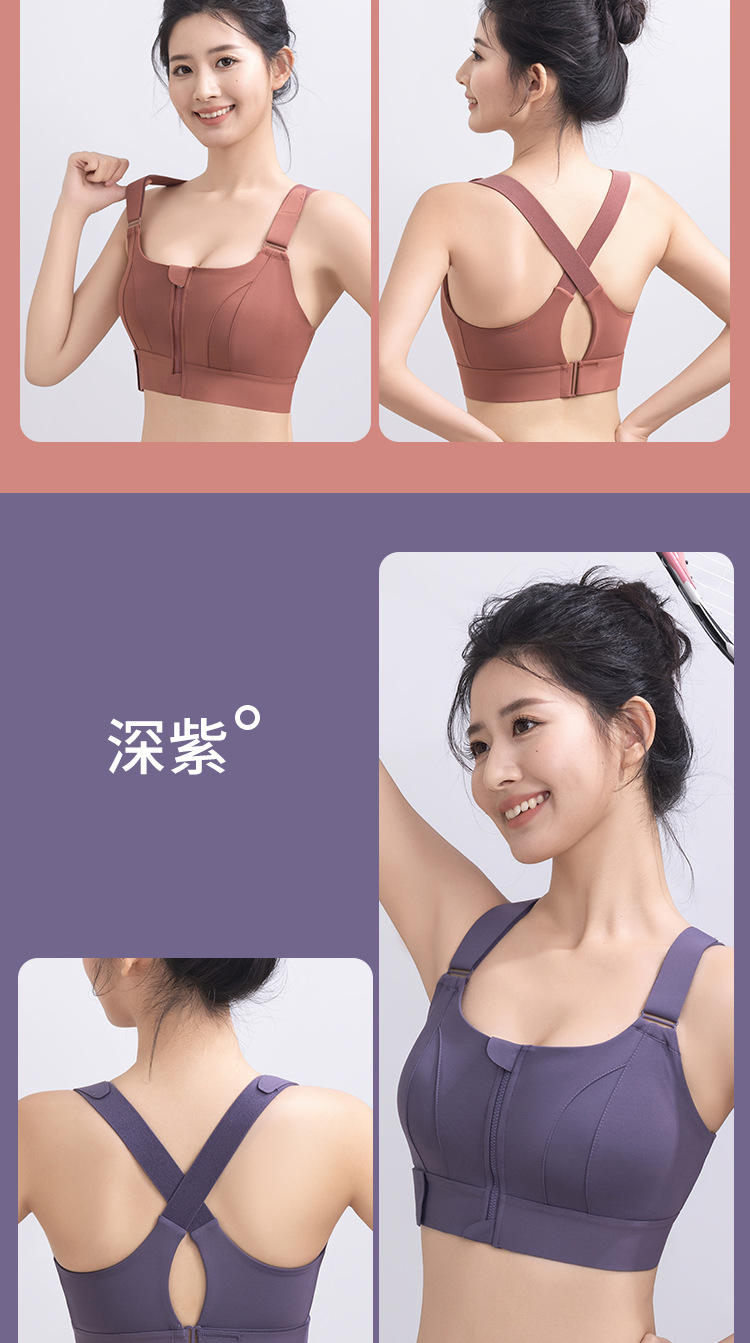 魔术贴前拉链运动文胸自由瑜伽露背内衣调节背心式高强度防震