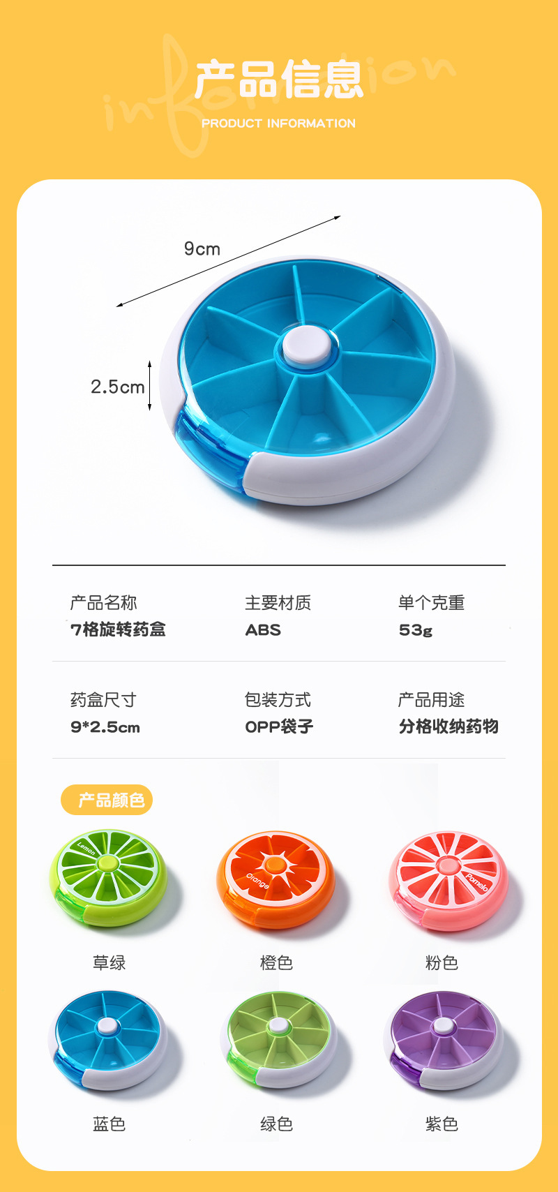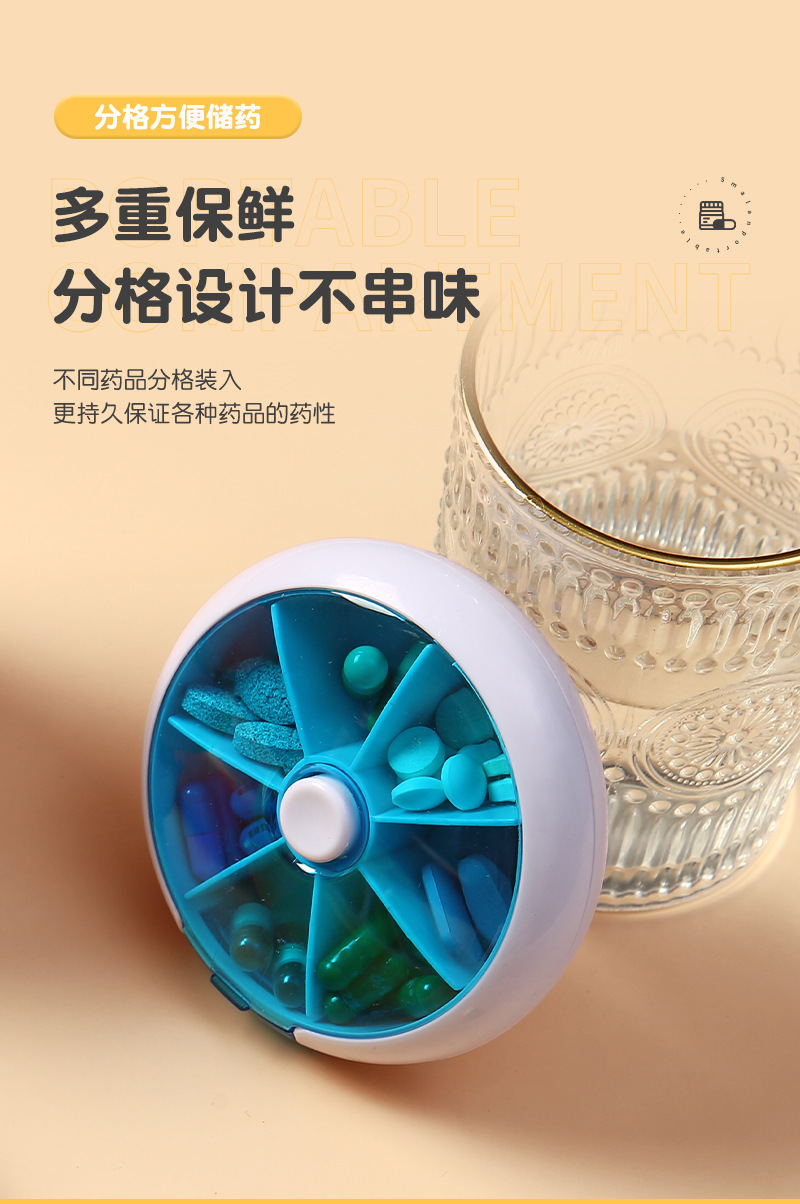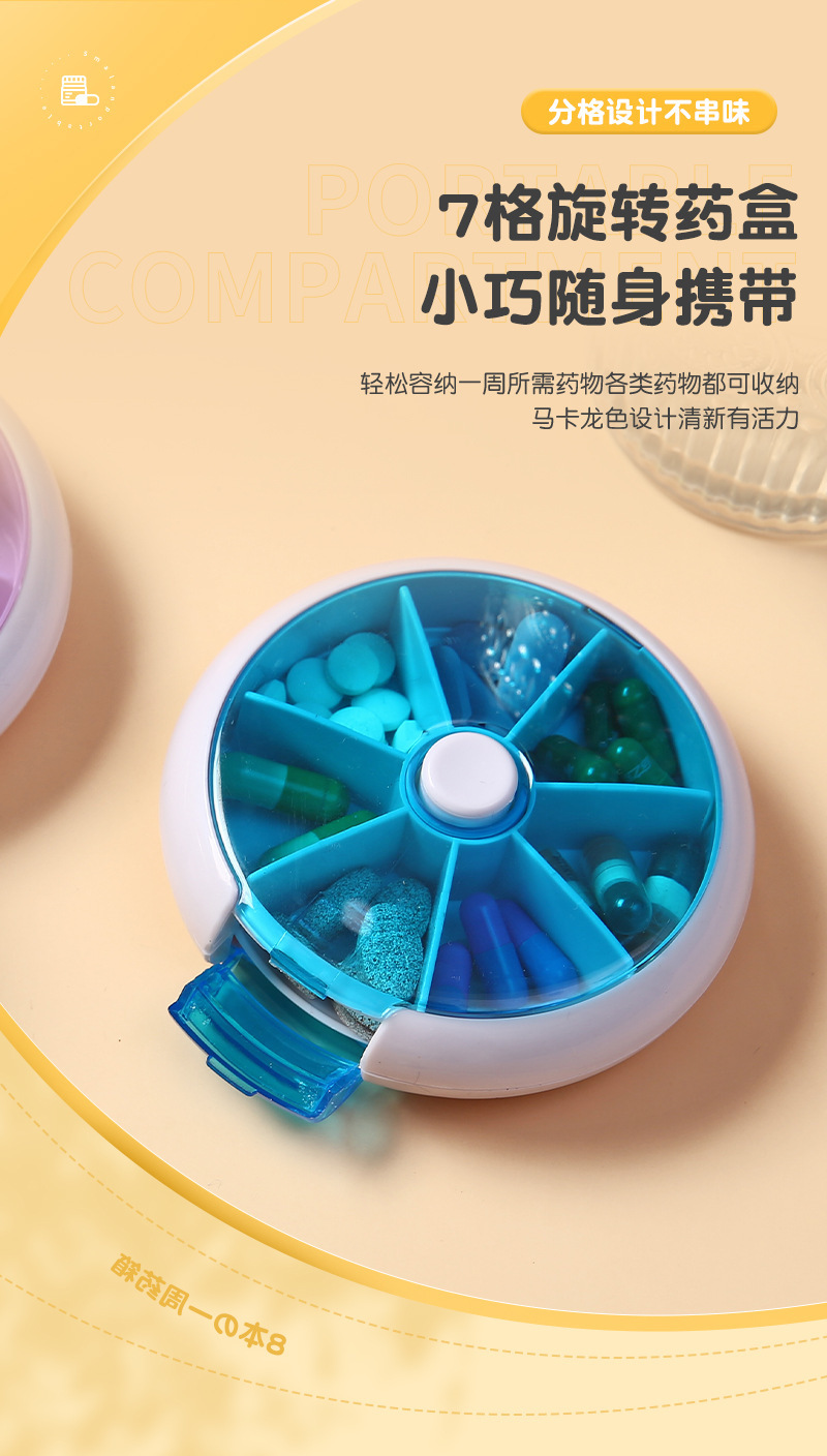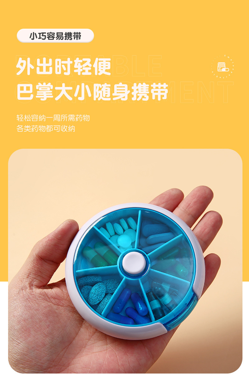 旅行便携式迷你小药盒 药丸盒密封收纳盒 一周7格随身分装药盒