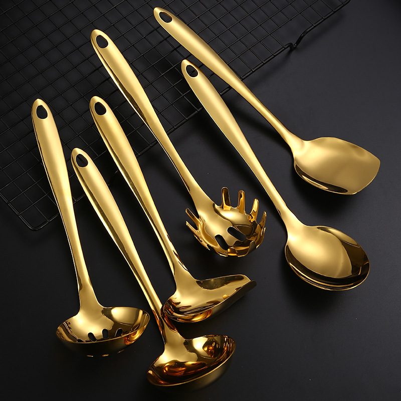 国境を越えたステンレススプーンシャベルセット金色調理器具14点セットスープスプーン分菜スプーン平シャベル油スプーン