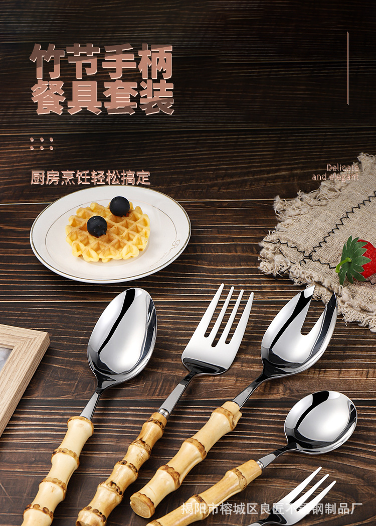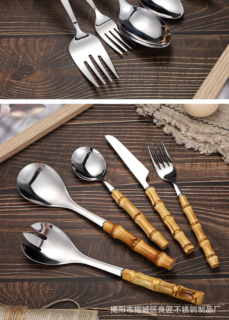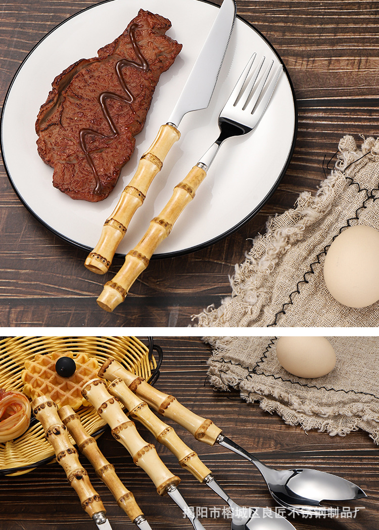 クロスボーダー竹柄ステンレス食器デザートサラダスプーンフォーク竹祭りハンドルステーキナイフスプーンティースプーン洋食セット