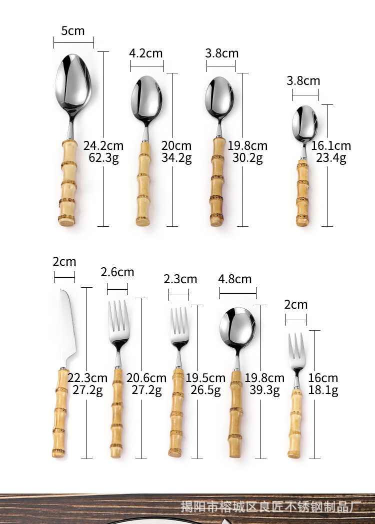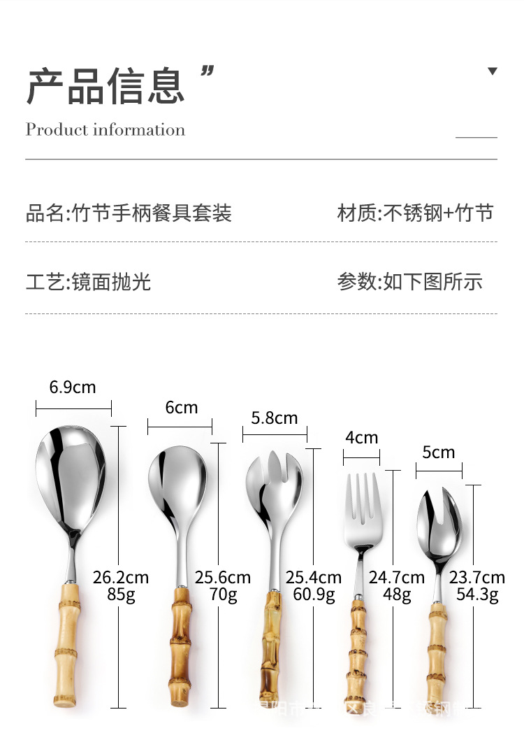 颜色 304竹柄餐刀,304竹柄餐勺,304竹柄餐叉,304竹柄茶勺,304竹柄圆勺,304竹柄甜品勺,304竹柄甜品叉,304竹柄茶叉,304竹柄长饭勺,304竹柄服务勺,304竹柄服务叉,304沙拉叉,304沙拉二齿叉,304竹柄大服务勺,304竹柄20件套,304细竹柄铲子