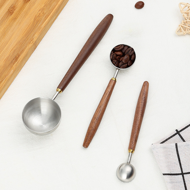 304ステンレス計量スプーンコーヒー計量スプーン胡桃木ハンドルスプーン台所焙煎コーヒー豆スプーン