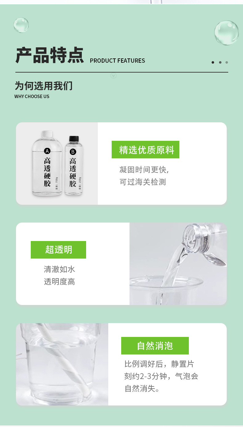 水晶滴胶高透明3:1自消泡diy材料高硬度可打磨耐黄变环氧树脂ab胶