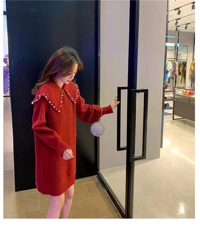 孕妇装秋装连衣裙网红套装时尚款春秋新款孕妇上衣秋冬装加厚毛衣