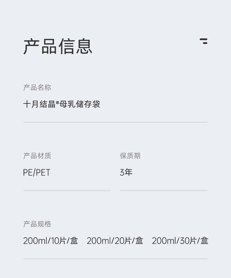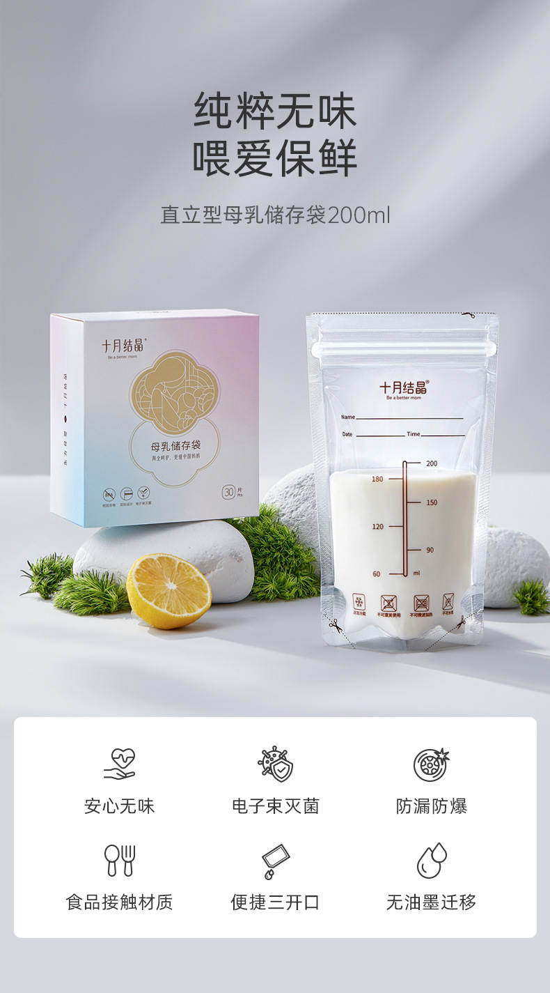 十月结晶母乳储奶袋奶水保鲜储存冷冻存奶袋200ml母乳储存袋30片