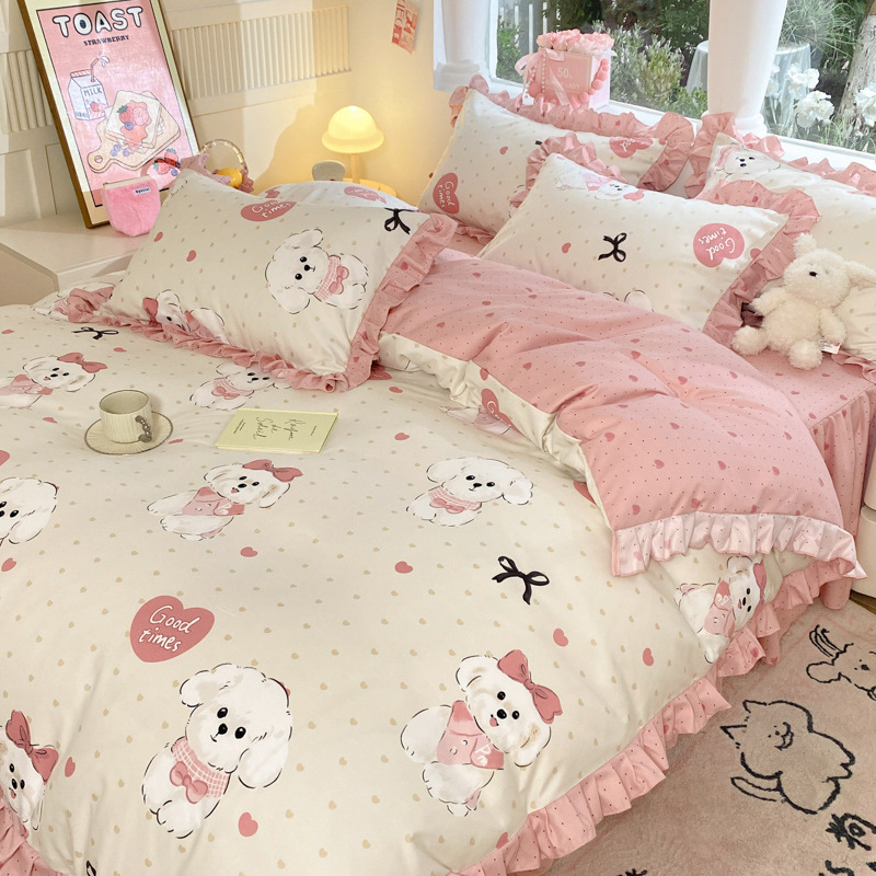 小清新純綿四点セットins裸寝綿シーツ布団カバー水洗い綿ベッド笠金親肌寝具
