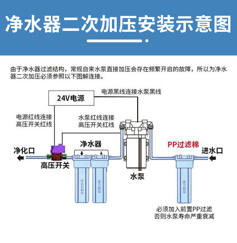 柏繁増圧自己吸引ポンプ浄水器24v家庭用直飲RO逆浸透フィルタダイヤフラム直流ポンプ