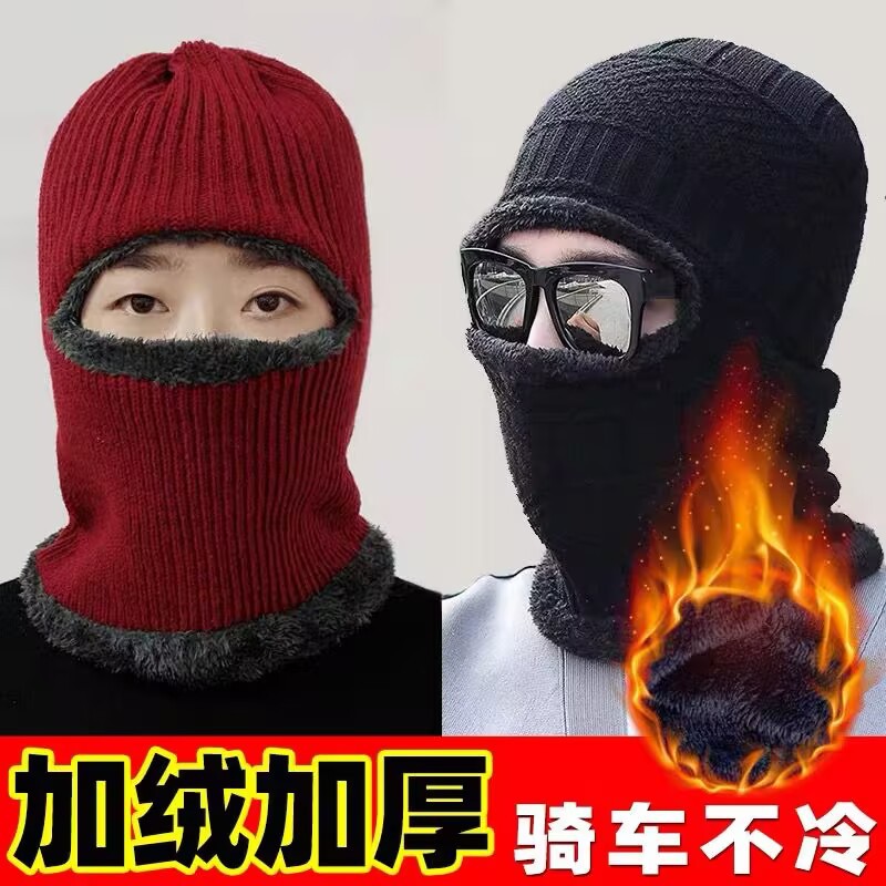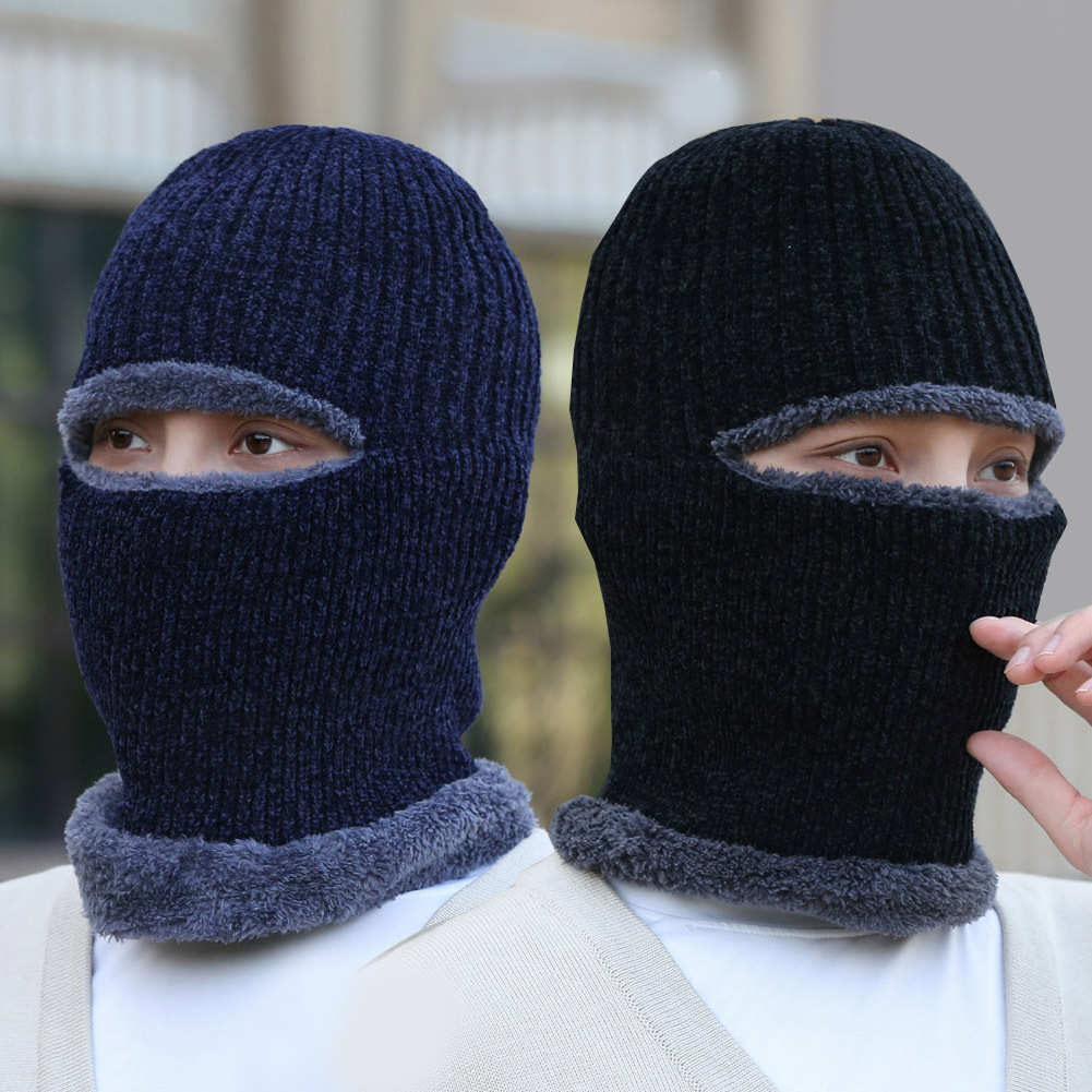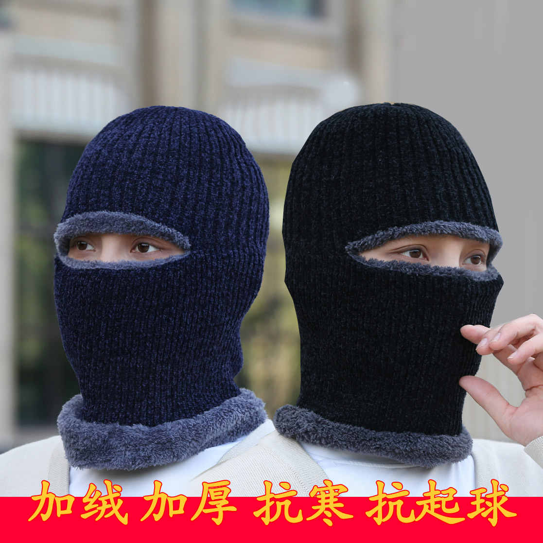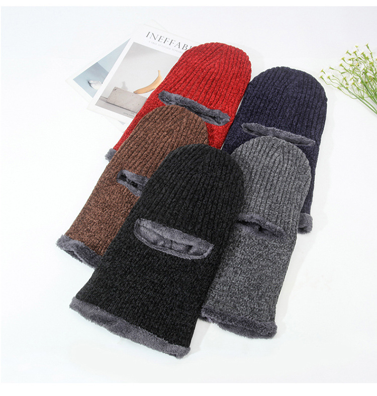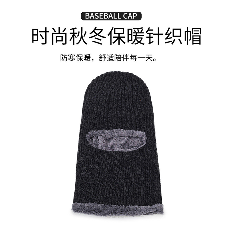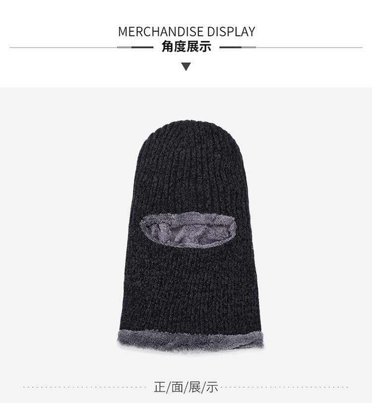 帽子冬季男士加绒连体帽秋冬骑车防寒保暖雪尼尔一眼帽针织帽跨境
