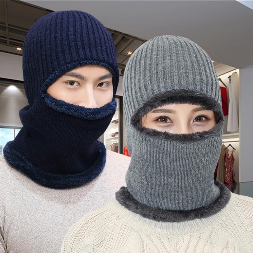 帽子男秋冬頭保温ベルベット一体ニット帽戸外旅行露眼覆面防寒毛糸帽子