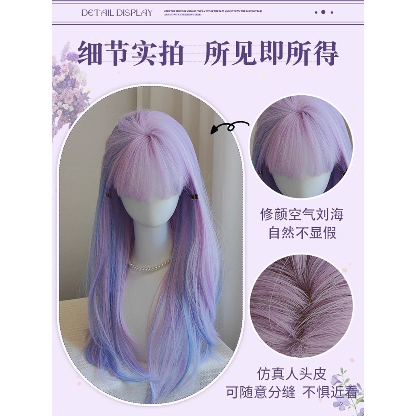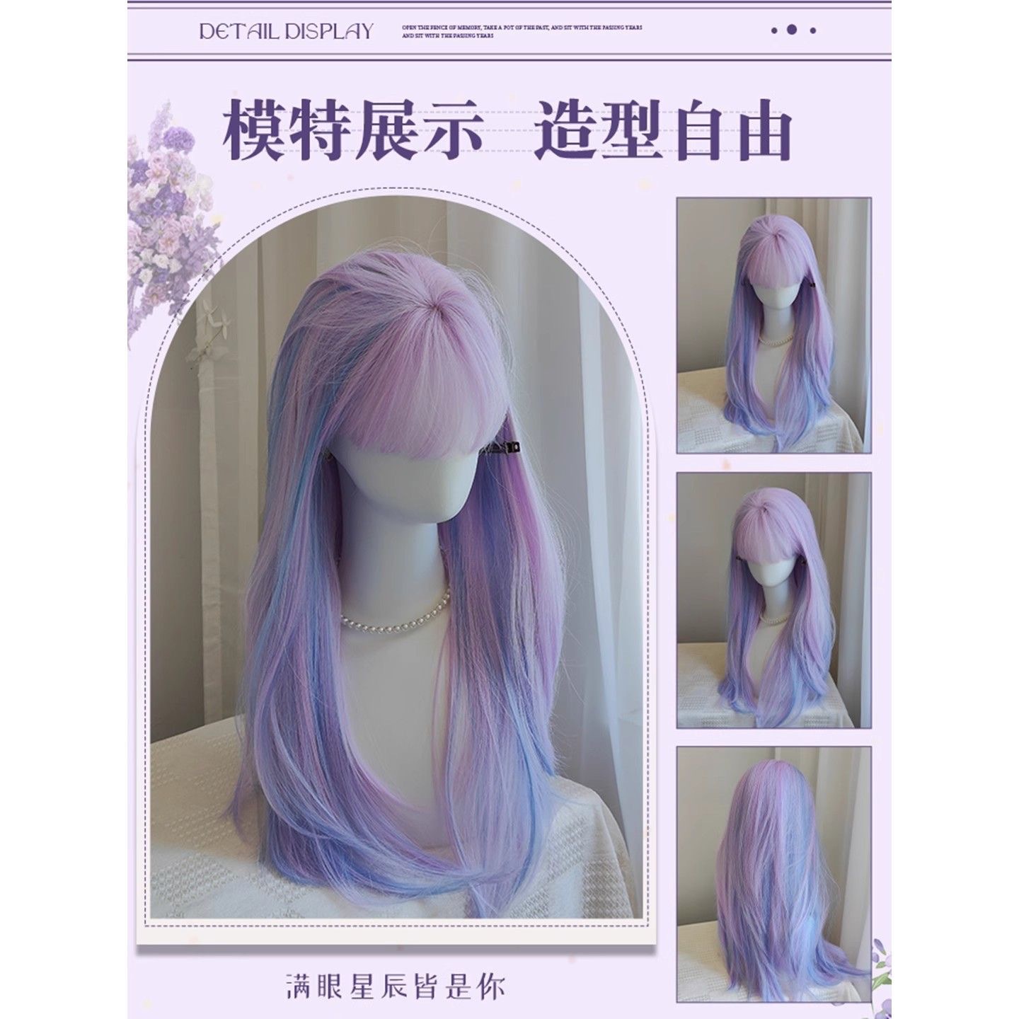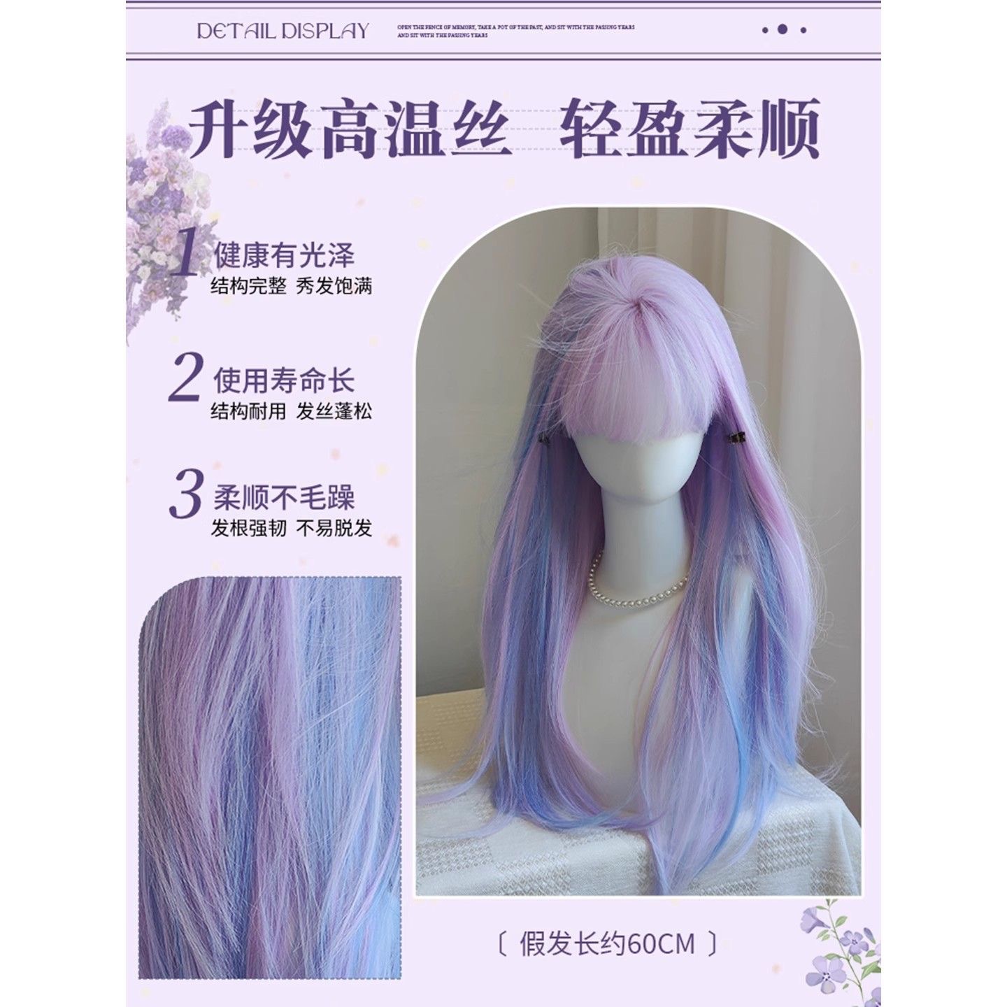 【雾月星河】假发女紫色挑染蓝高层次长直发自然蓬松仿真发全头套