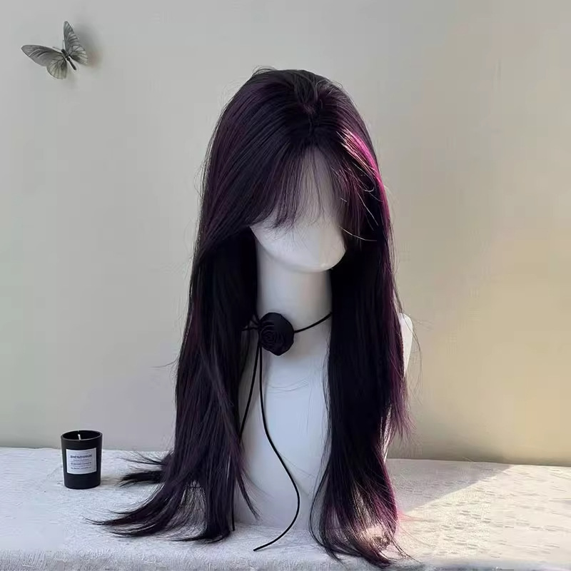 【少司命】アンドロメダ長直髪黒紫八字前髪高レベル白擬似自然長髪かつら