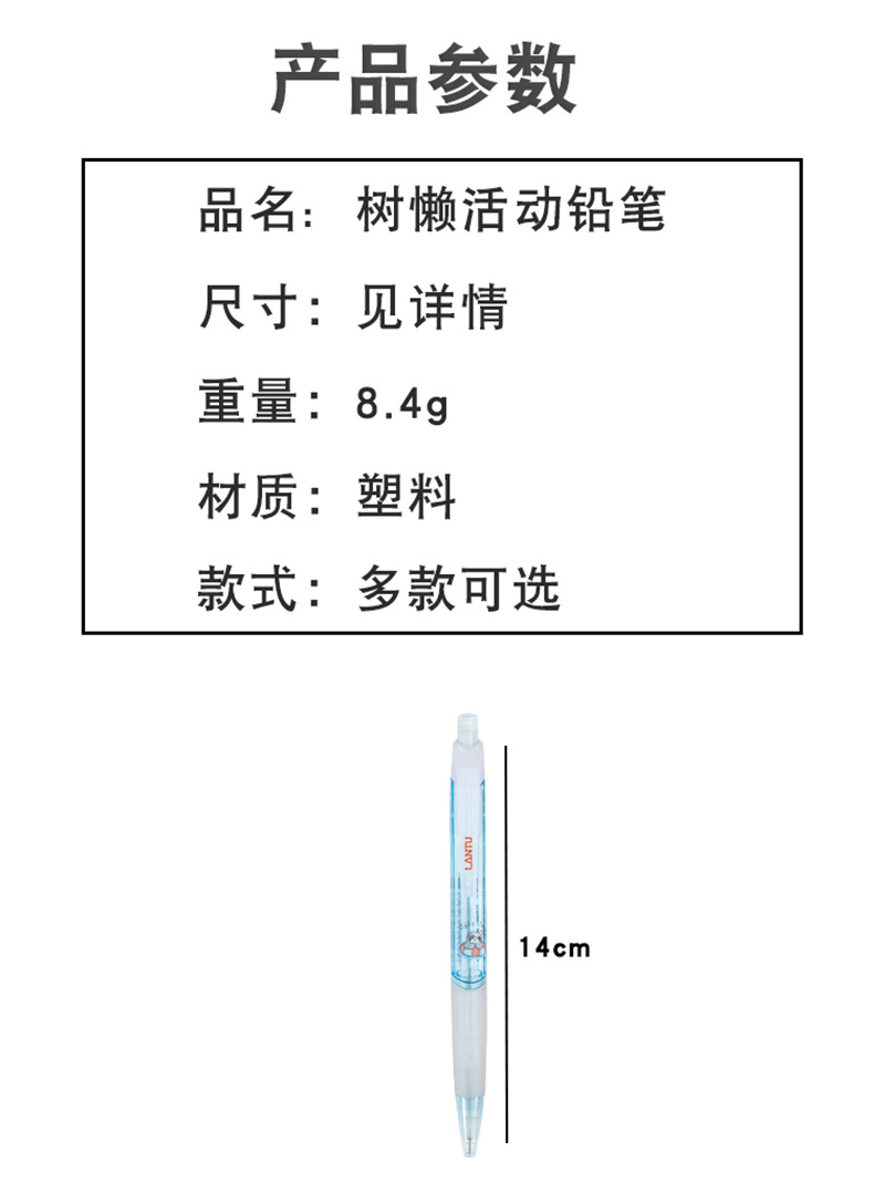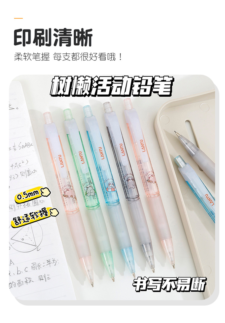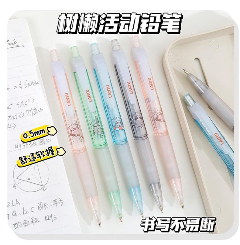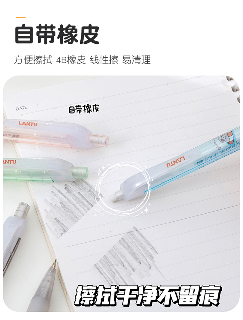 树懒透明自动铅笔不断芯简约小学生按动铅笔自带橡皮儿童活动铅笔