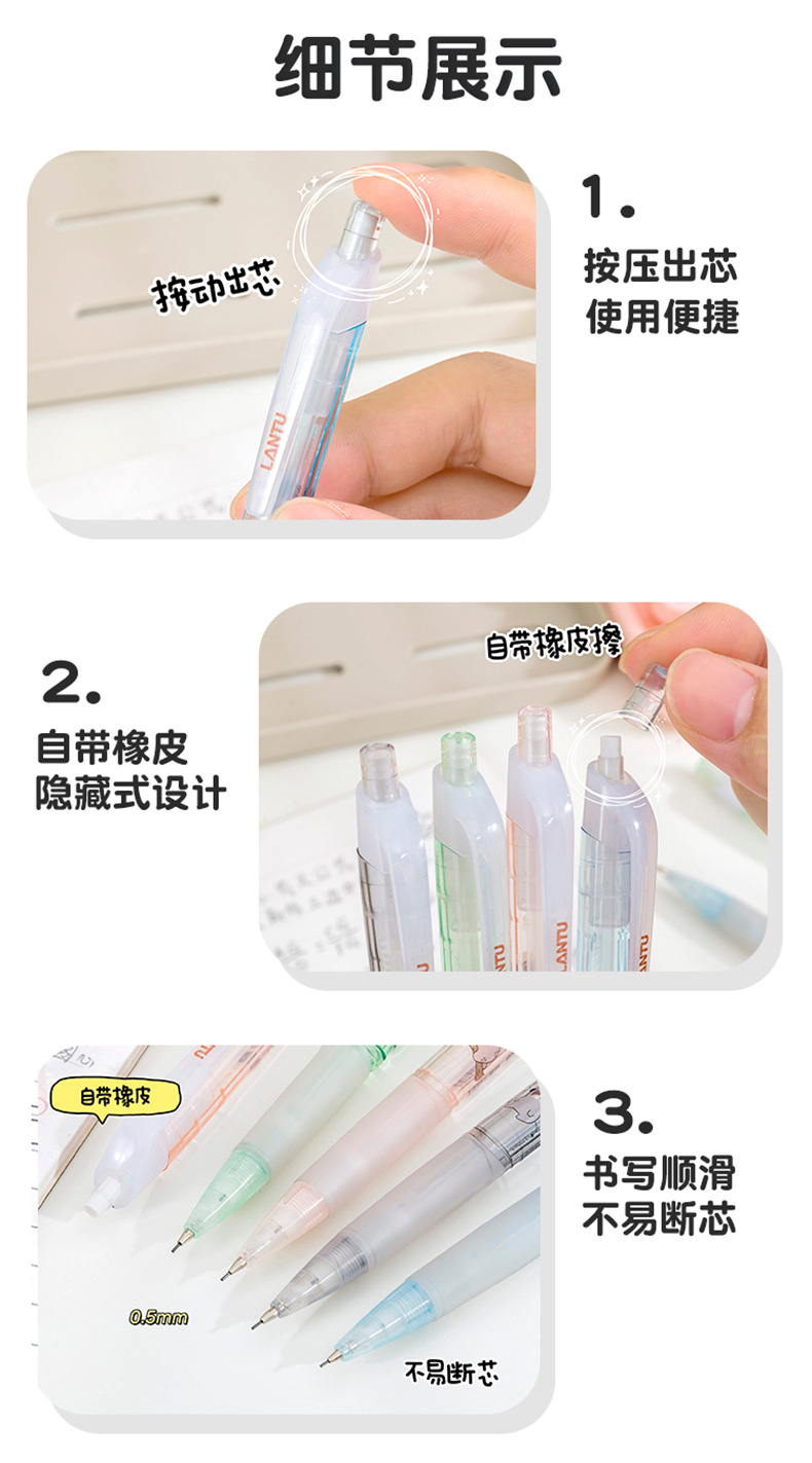 有力な活動鉛筆はシンプルで清新な学生が0.5mmの断芯防止シャープペン文房具卸売りを書く